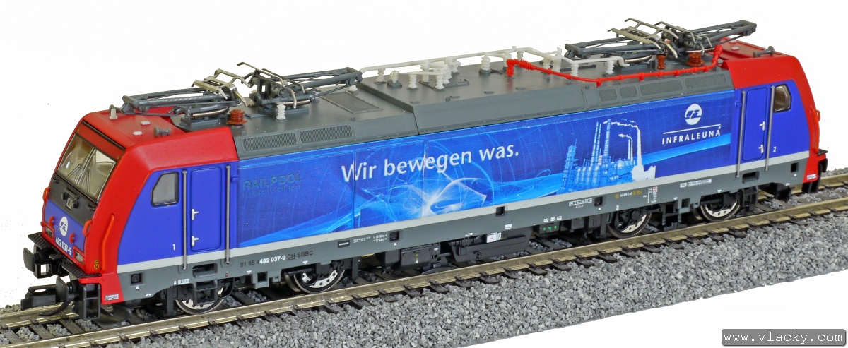 Popis   elektická lokomotiva červená-modrá „Infraleuna“