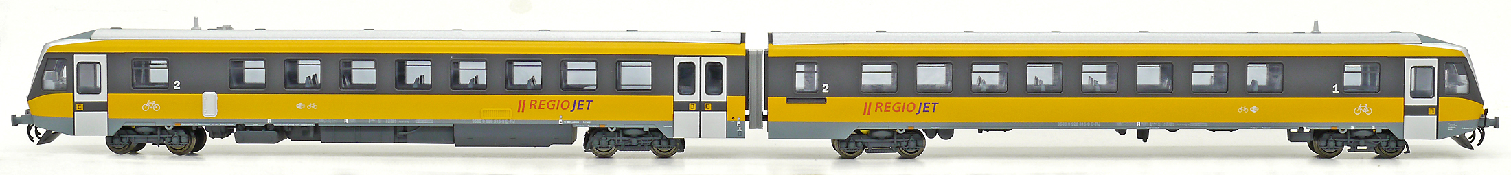 | motorová jednotka v barevném schematu „RegioJet“ |
