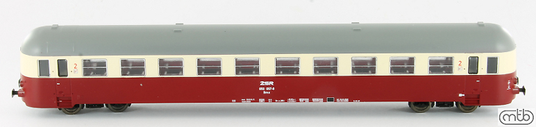 Kód   CD-Bmx-050  [Lokomotivy] → [Motorové vozy a jednotky] → [M286 (850,851)] → CD-Bmx-050: přívěsný vůz červený-krémový s šedou střechou