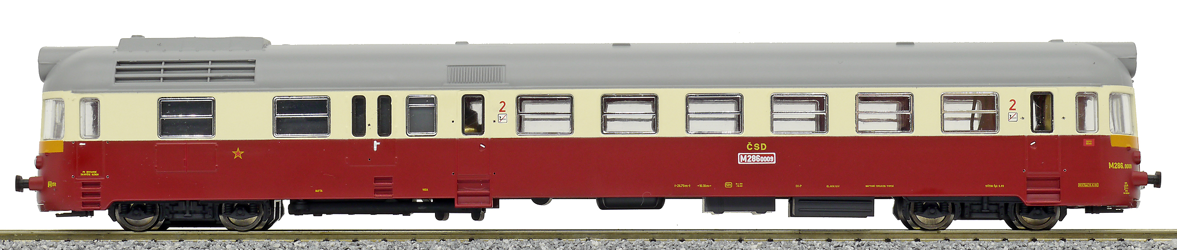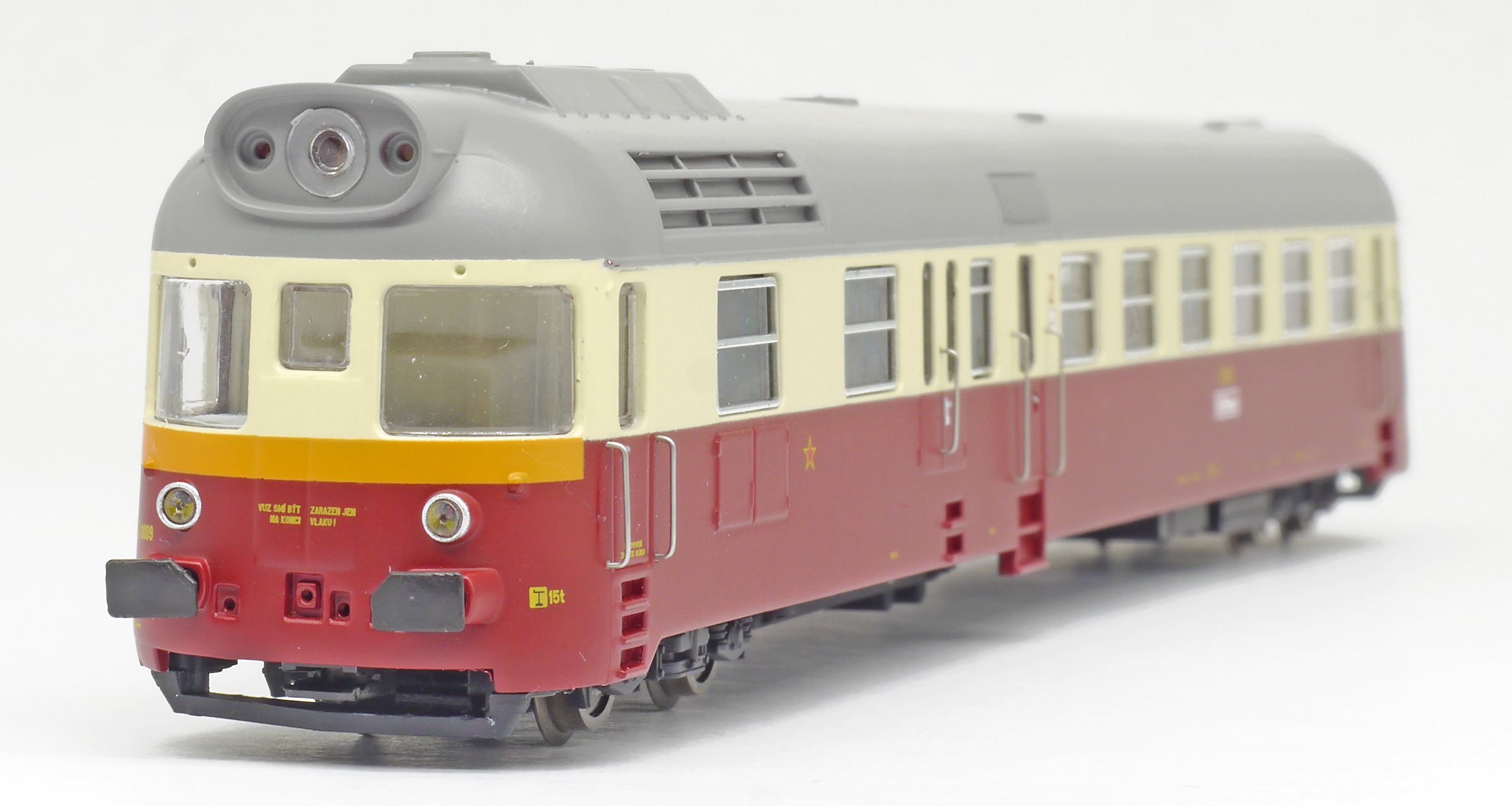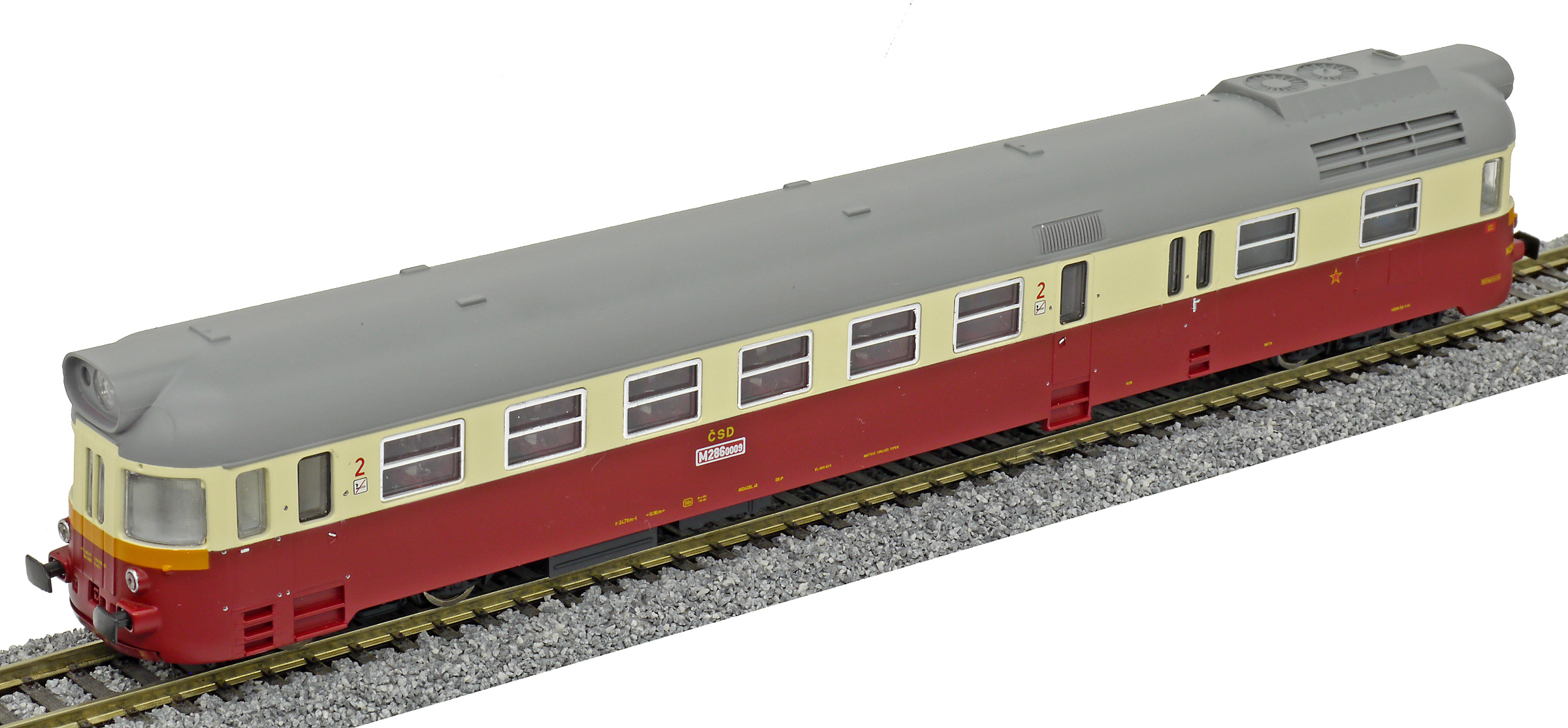 | motorový vůz červený-slonová kost s šedou střechou |
