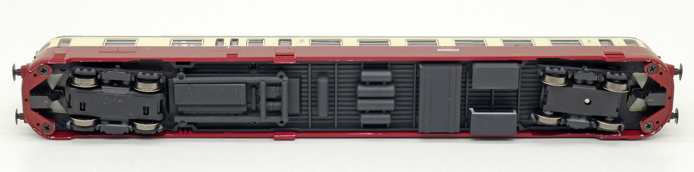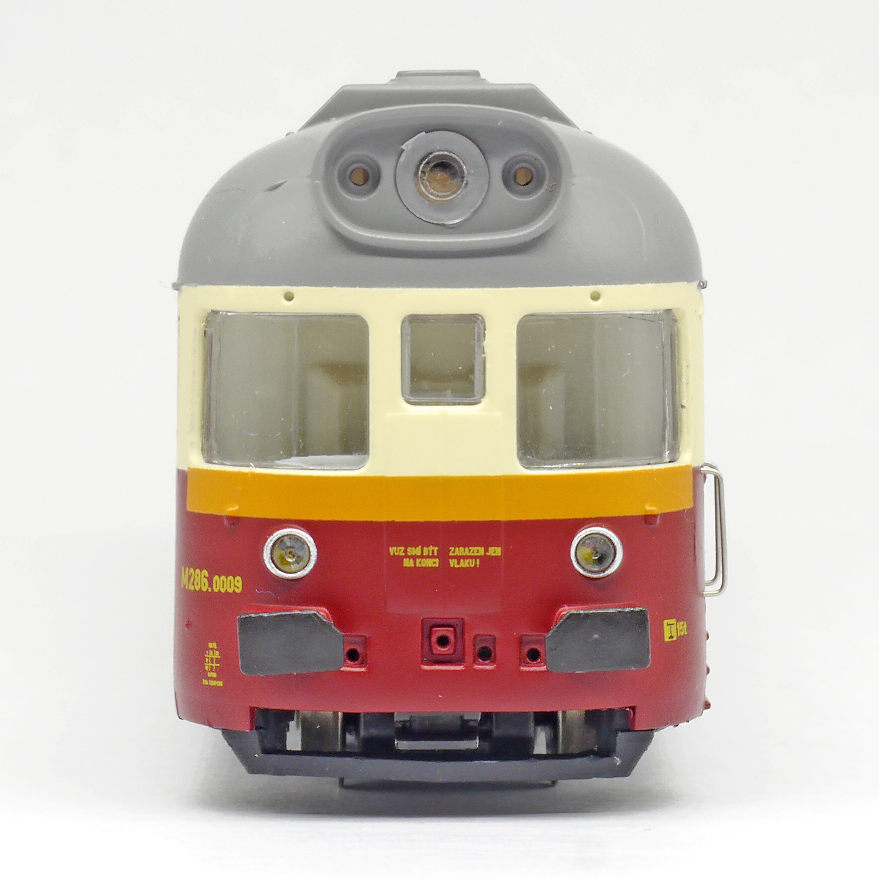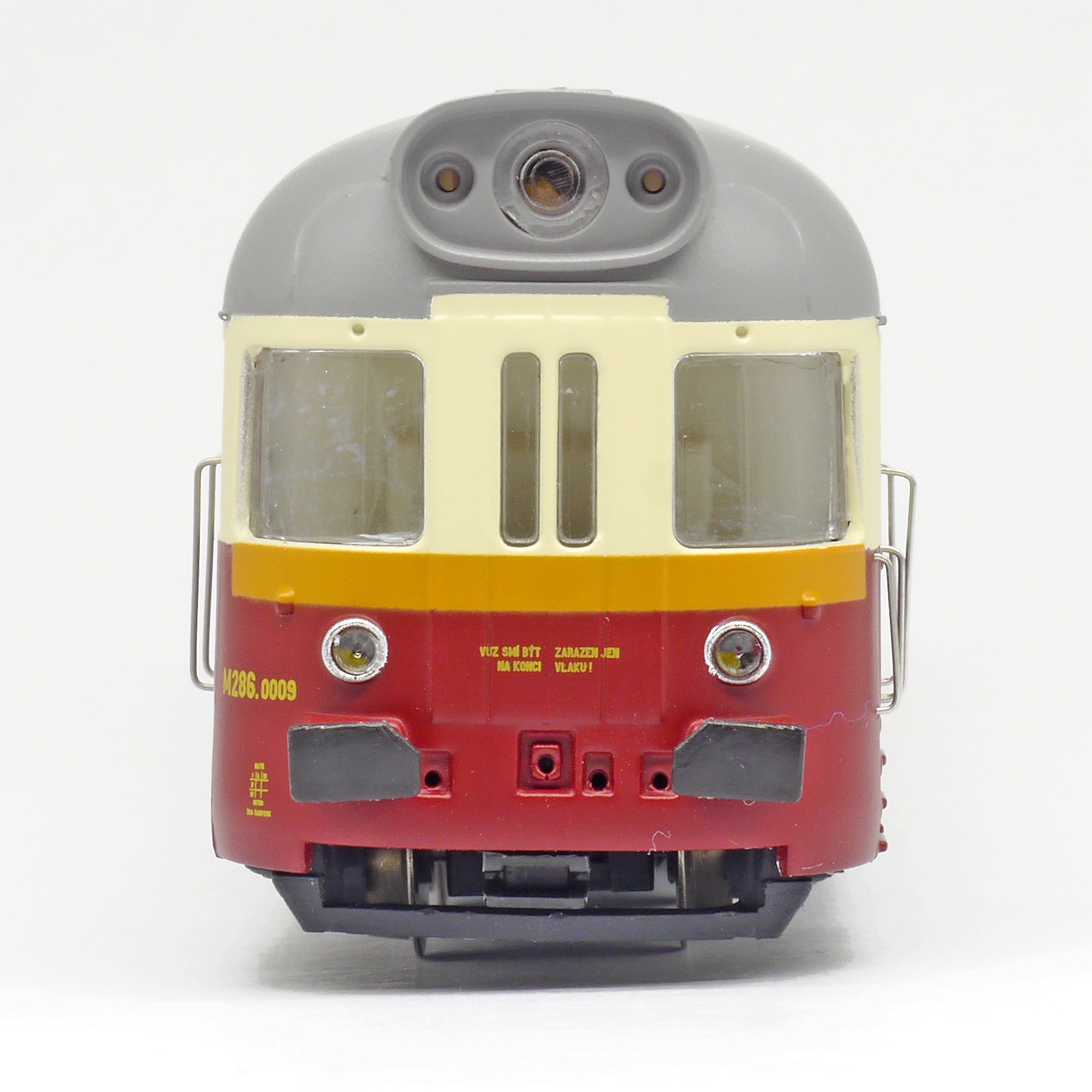 | motorový vůz červený-slonová kost s šedou střechou |