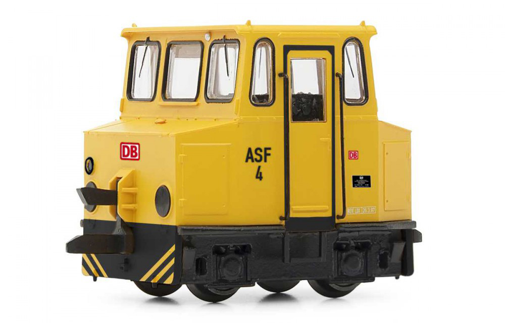 Popis   žlutá s černým pojezdem akumulátorová posunovací lokomotiva