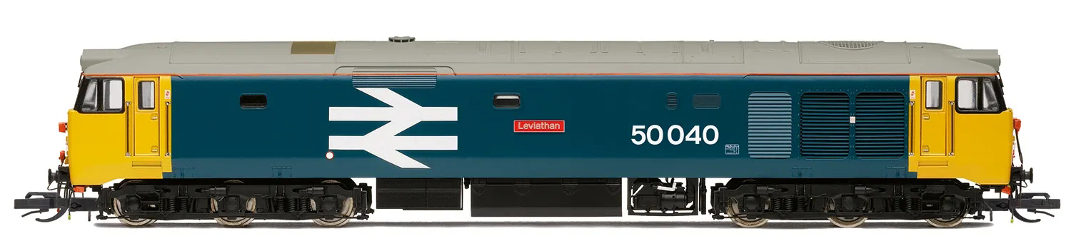 dieselová lokomotiva modrá-žlutá, šedá střecha, černý pojezd „Leviathan“