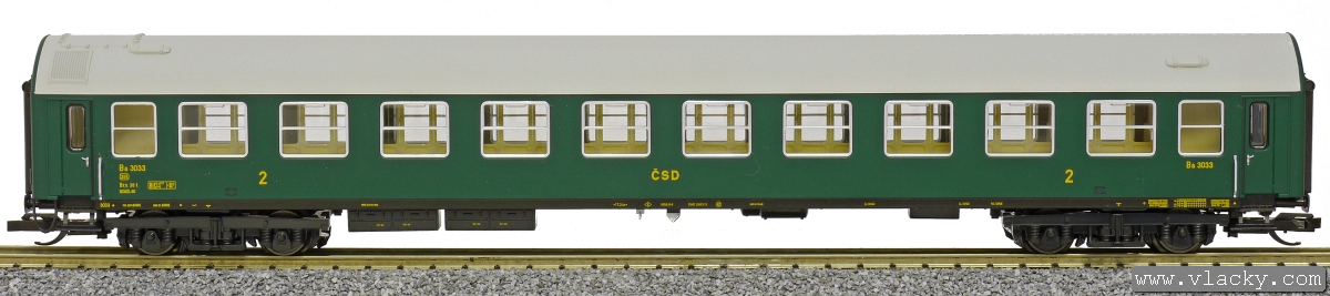 Kód   01699   ze SETu   [Osobní vozy] → [Rychlíkové] → [typ Y] → 01699: lehátkový vůz zelený-slonová kost s olivovou střechou 2. tř.
