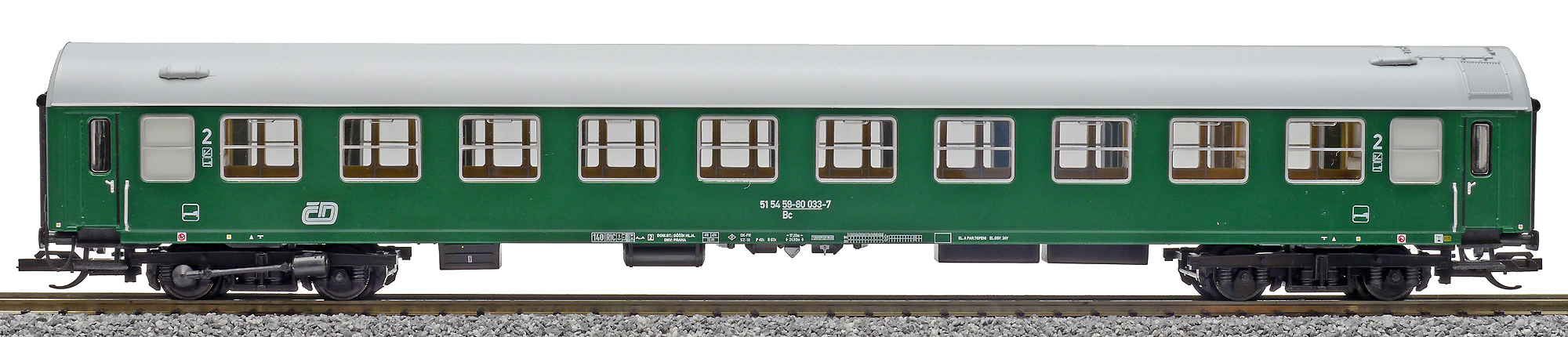 | • 51 54 59-80 033-7 | → | osobní vůz s pevným rozchodem bez klimatizace mezinárodní provoz RIC |