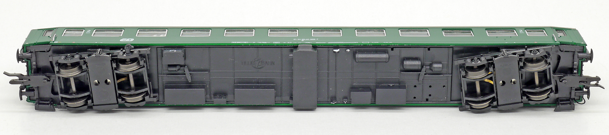| rychlíkový vůz zelený s šedou střechou 2. tř. |