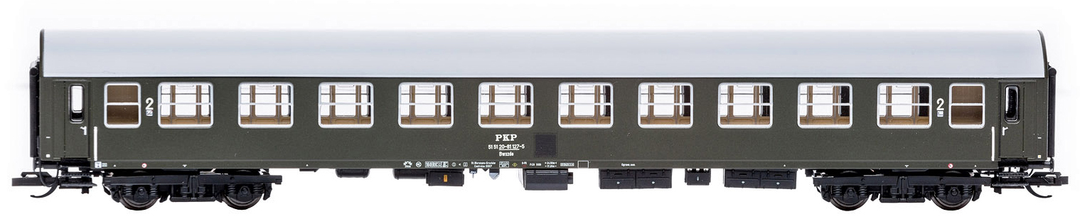 | rychlíkový vůz tmavě zelený s šedou střechoou 2. tř. |
