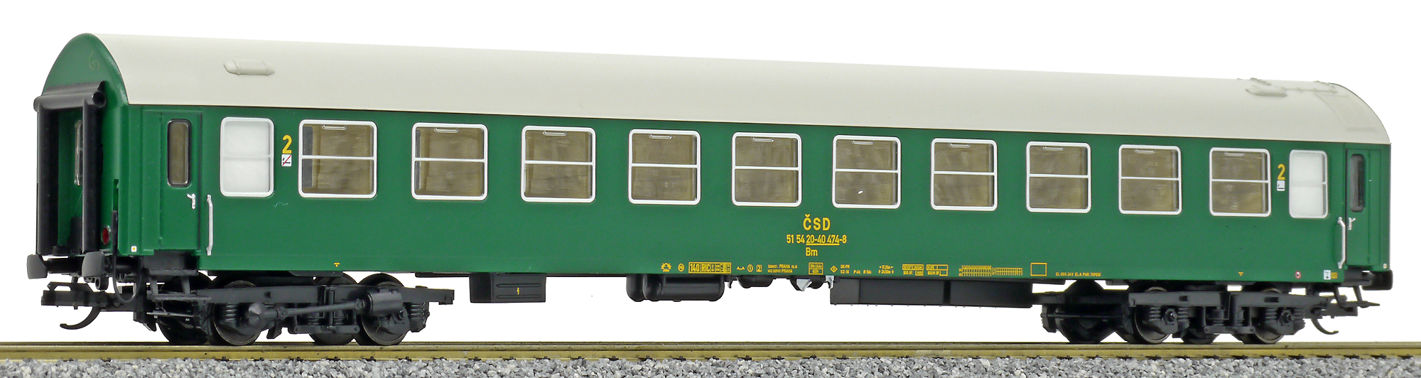 Kód   501588  [Osobní vozy] → [Rychlíkové] → [typ Y] → 501588: rychlíkový vůz zelený s šedou střechou 2. tř.