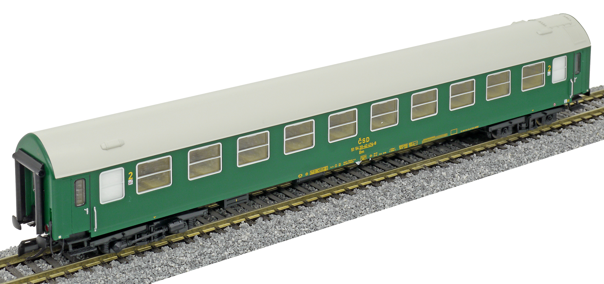 Kód   01699   ze SETu   [Osobní vozy] → [Rychlíkové] → [typ Y] → 01699: lehátkový vůz zelený-slonová kost s olivovou střechou 2. tř.