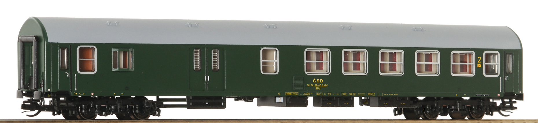 | rychlíkový vůz se zavazadlovým oddílem zelený s šedou střechou 2. tř. |