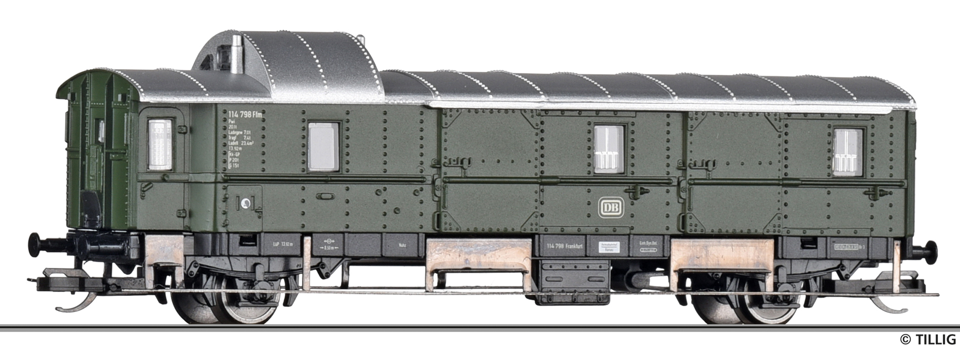 | zavazadlový vůz zelený s šedou střechou |