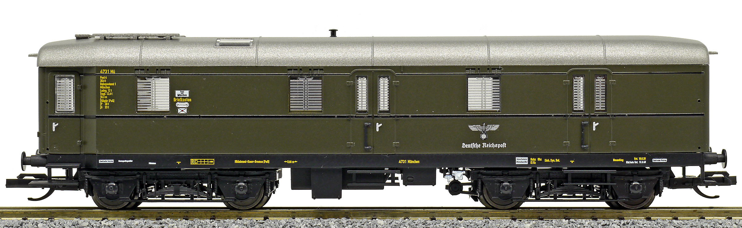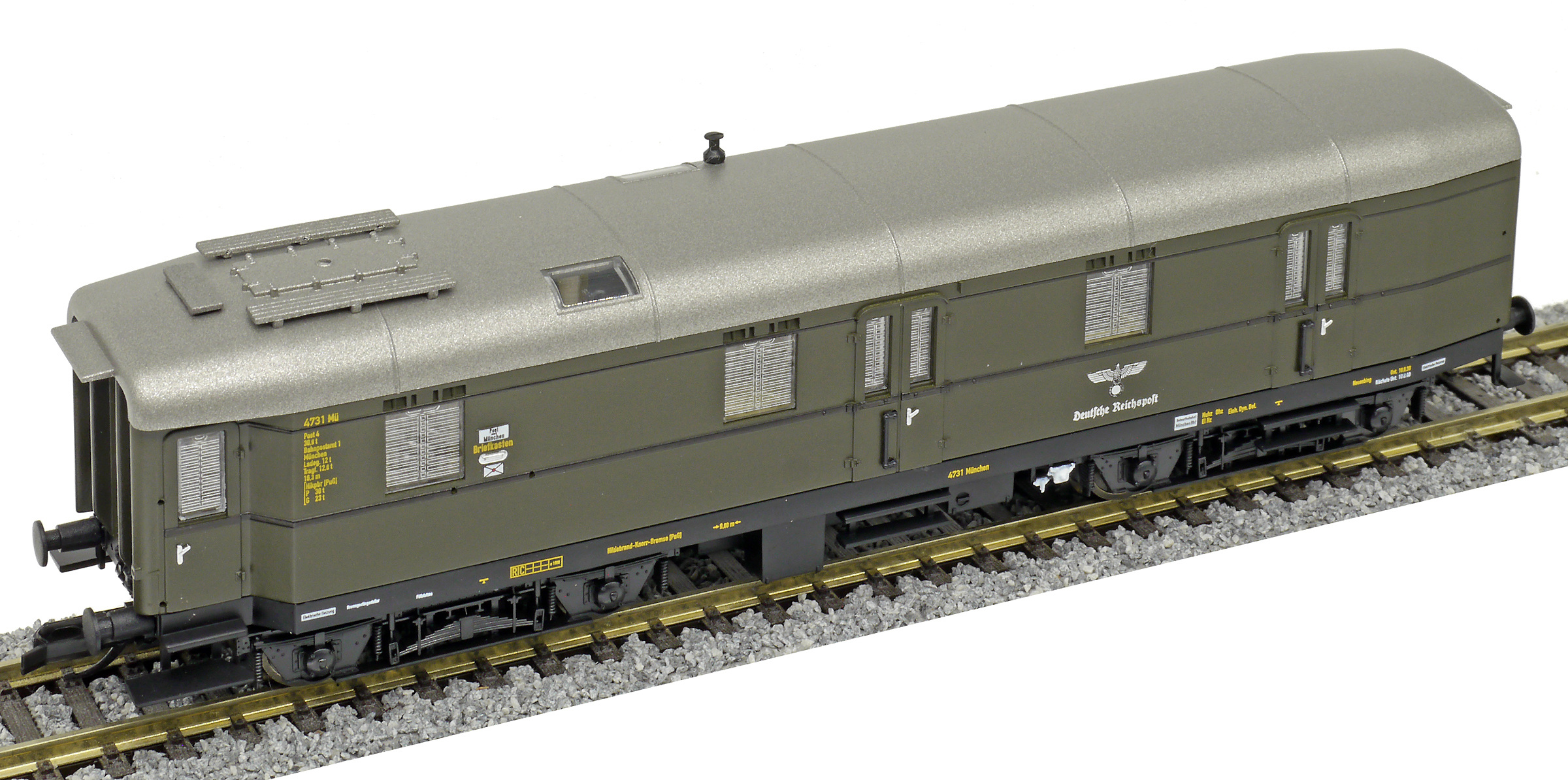 | poštovní vůz zelený se stříbrnou střechou „Deutsche Reichspost” |