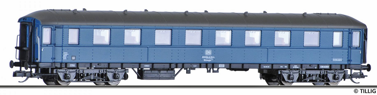 | osobní vůz modrý s šedou střechou do pracovního vlaku |