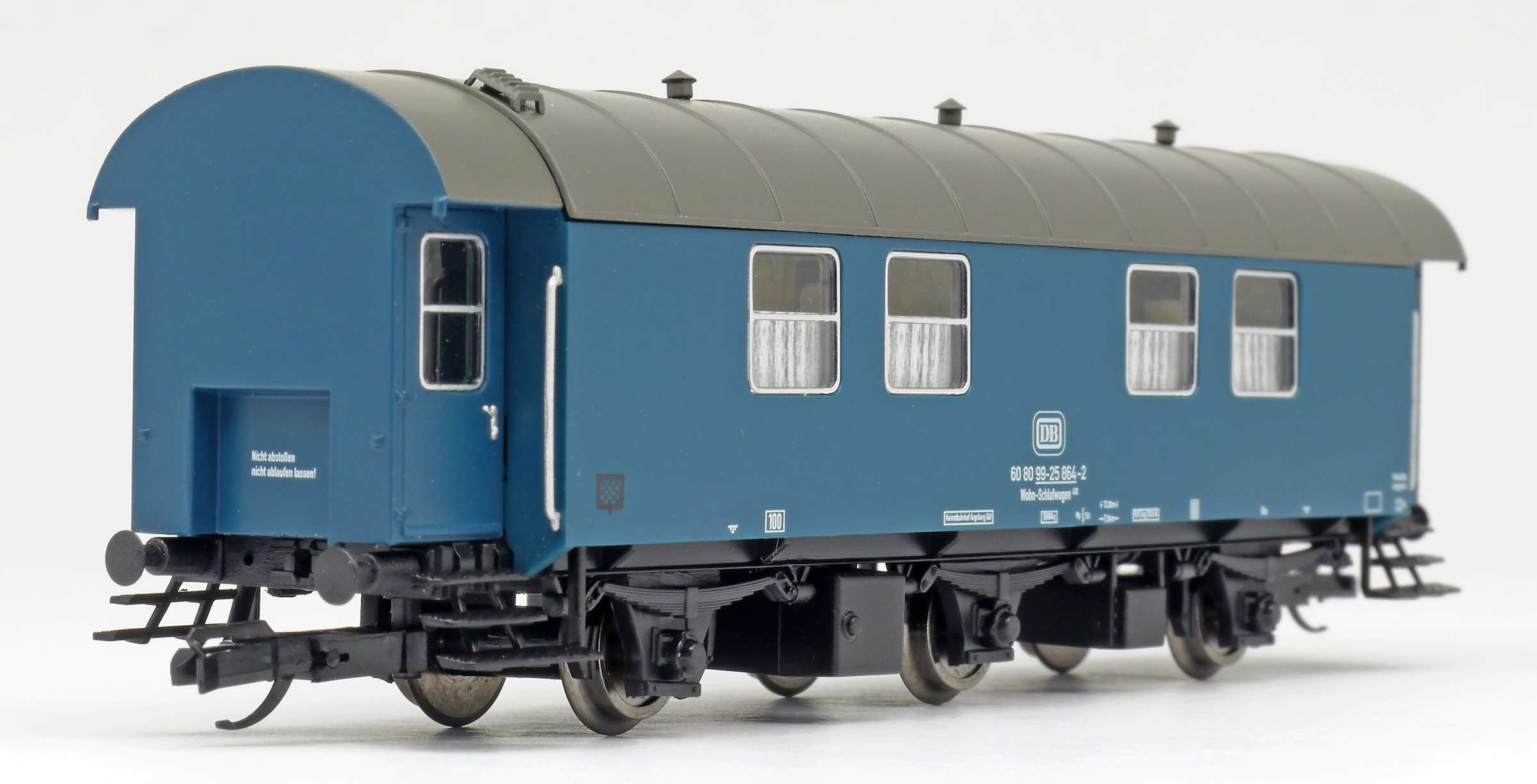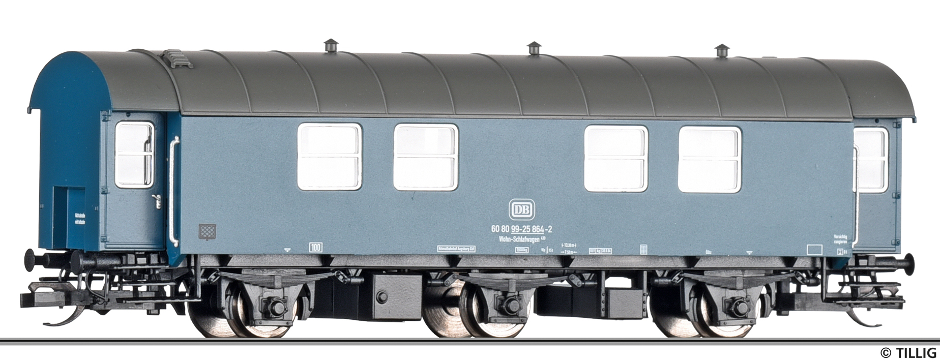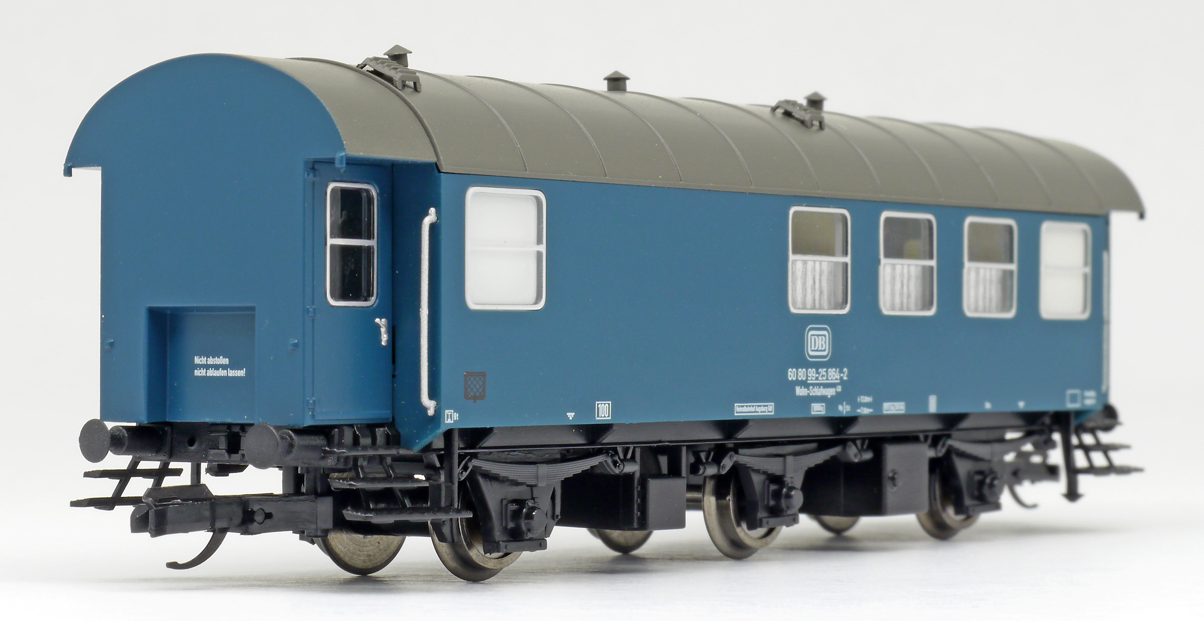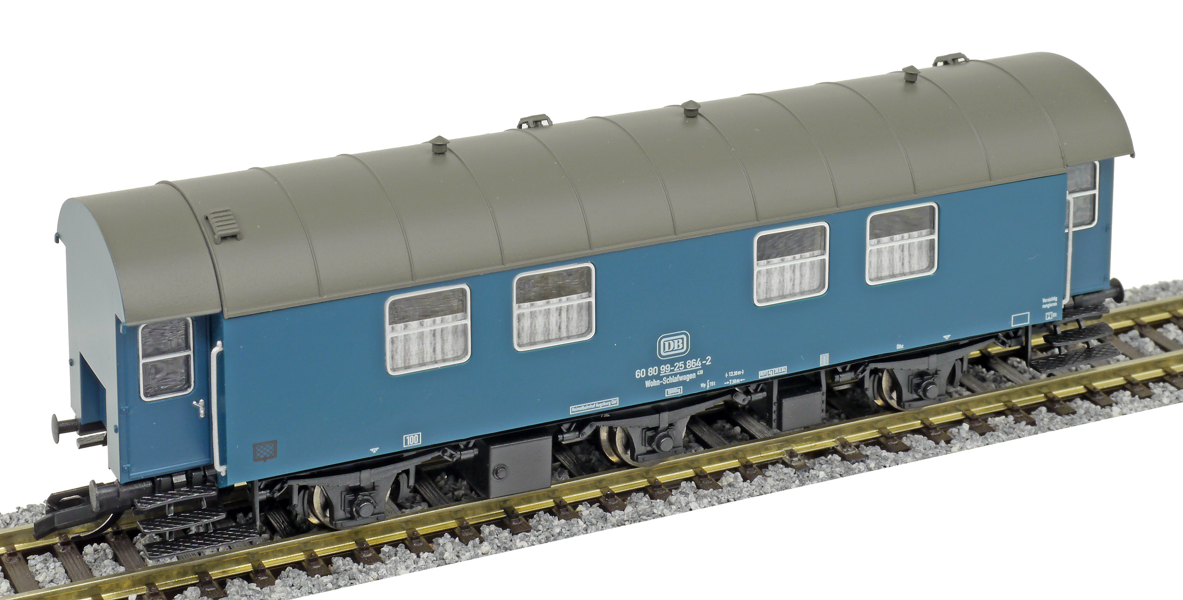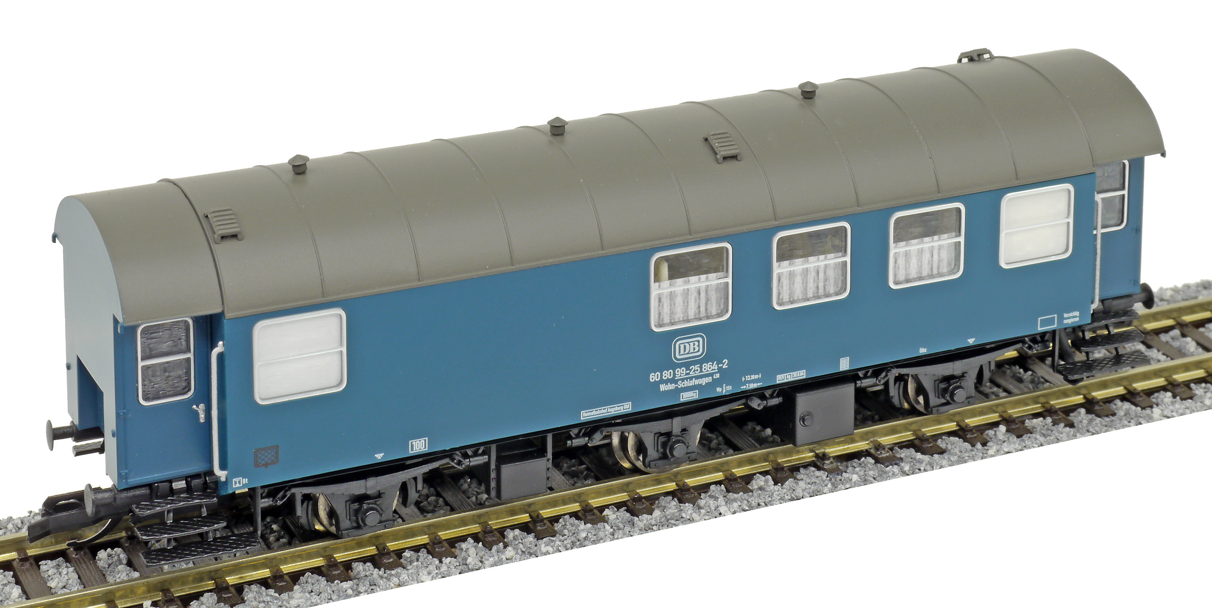 | obytný vůz modrý s šedou střechou do pracovního vlaku |