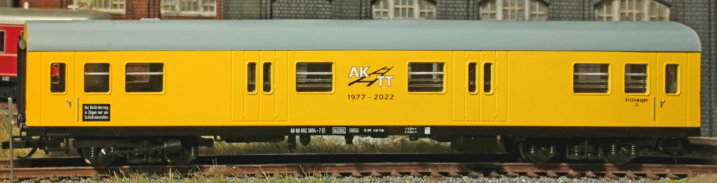 | modernizovaný vůz žlutý s šedou střechou „AKTT 1977-2022“ |