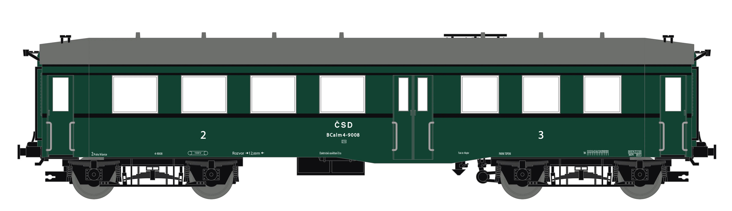 Popis   osobní vůz zelený s šedou střechou 2./3. tř.