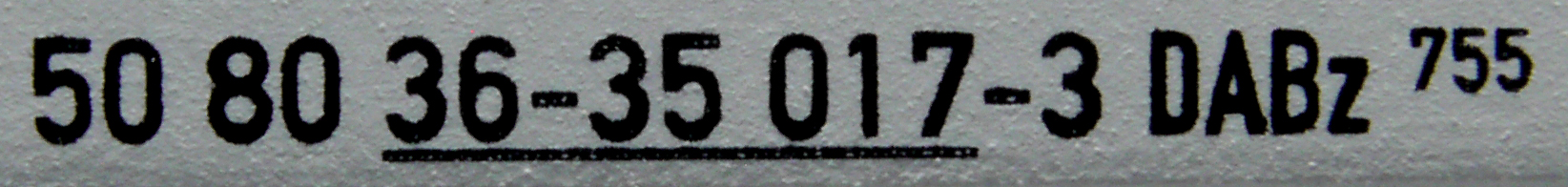 Číslo   50 80 36-35 017-3  Kontrolní číslice je v pořádku  Tovární číslo