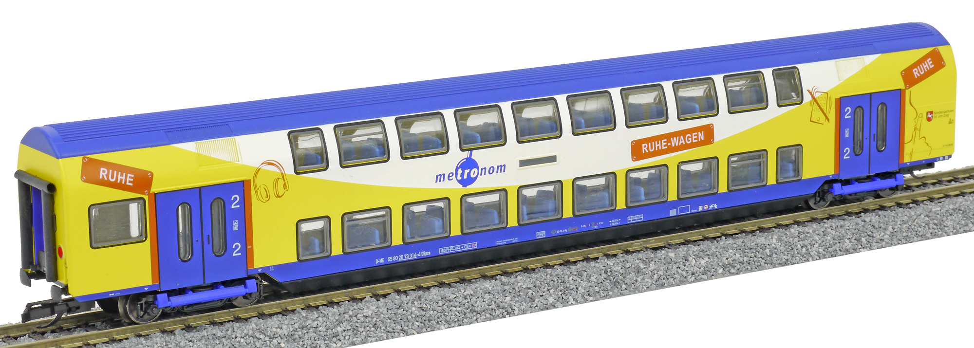 | osobní patrový „tichý“ vůz v barevném schematu „metronom“ 2. tř |