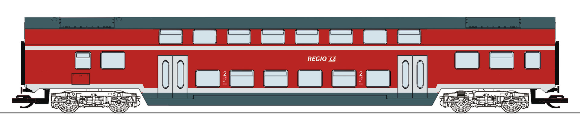 středový patrový vůz v barvách „Regio DB“ 2. tř.