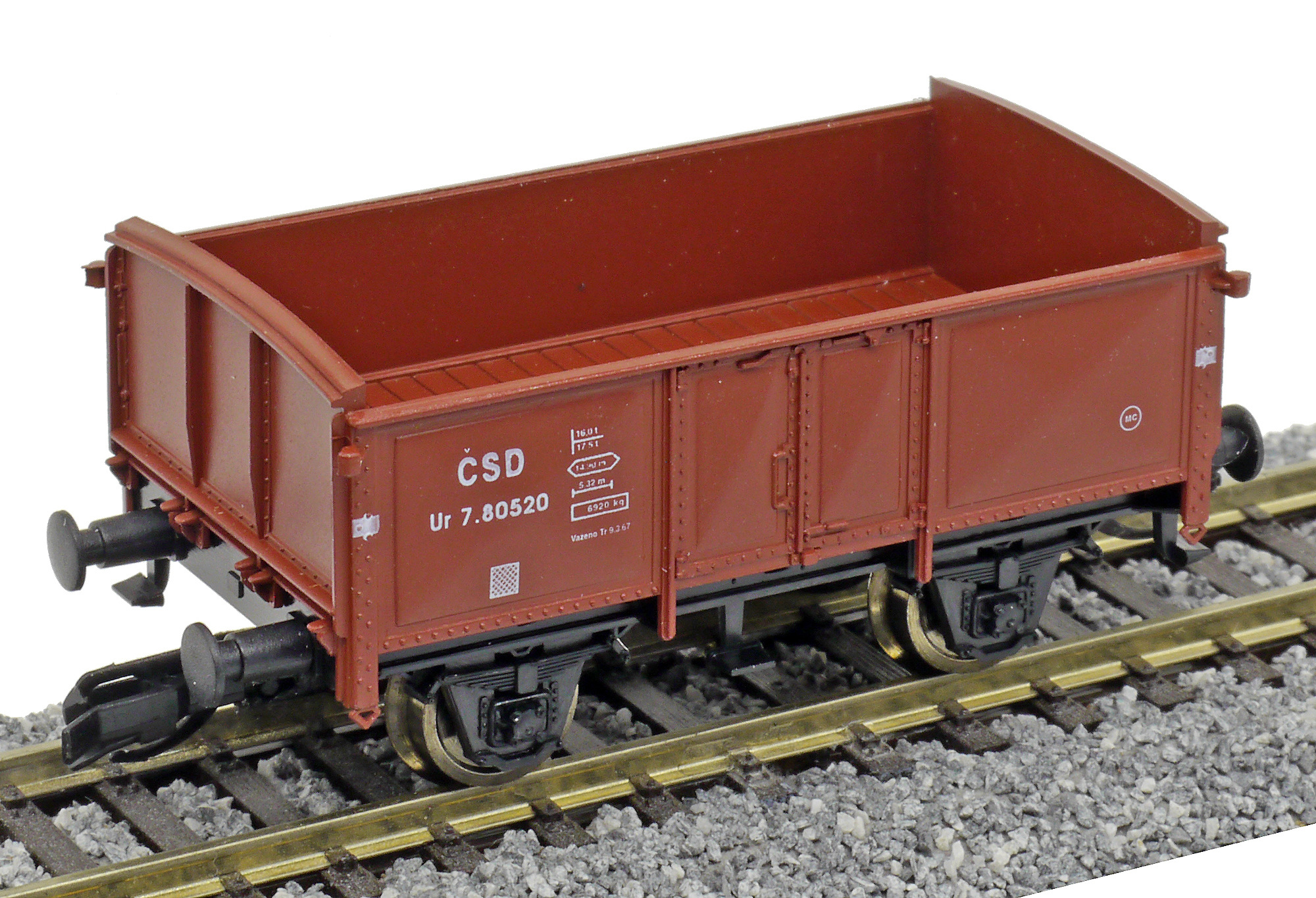 | otevřený nákladní vůz červenohnědý, černý pojezd |