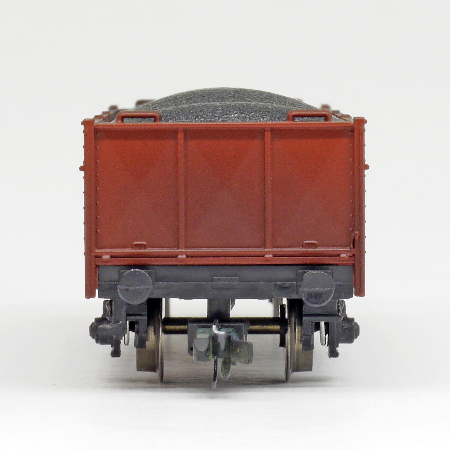 | otevřený nákladní vůz červenohnědý s nákladem, přetisky čísla vozu |