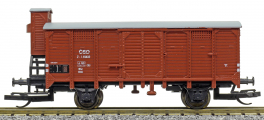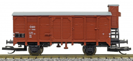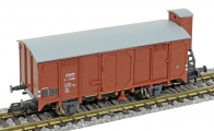 Kód   - nemá -  [Nákladní vozy] → [Kryté] → [2-osé s nízkou střechou] → : krytý nákladní vůz červenohnědý s šedou střechou a brzdařskou budkou