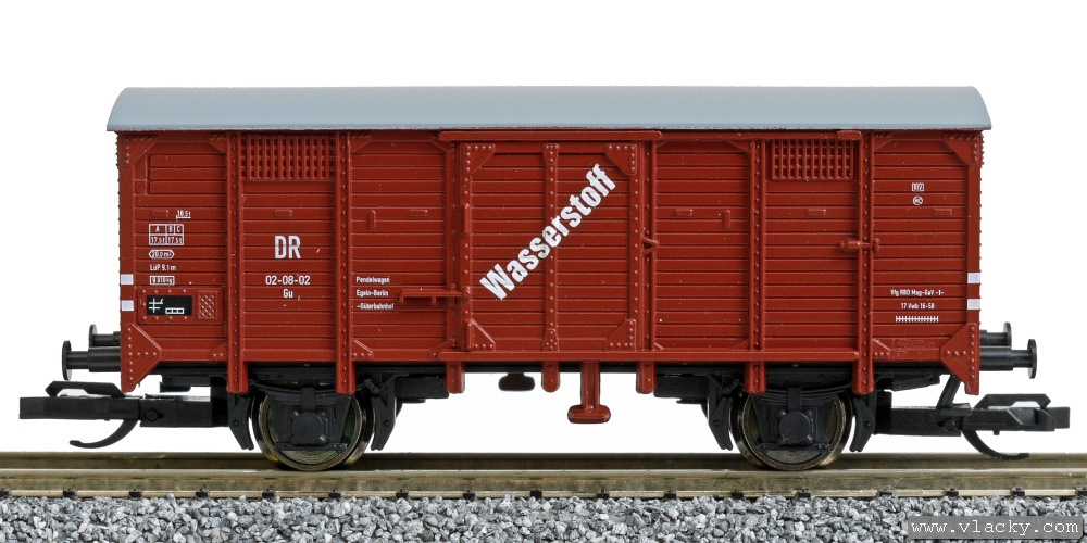 | krytý nákladní vůz červenohnědý s šedou střechou „Wasserstoff“ |
