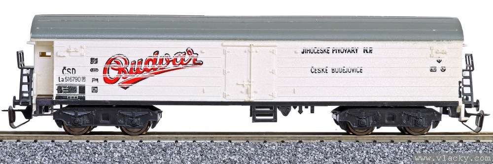 | nákladní chladící vůz bílý s šedou střechou „Budvar“ |