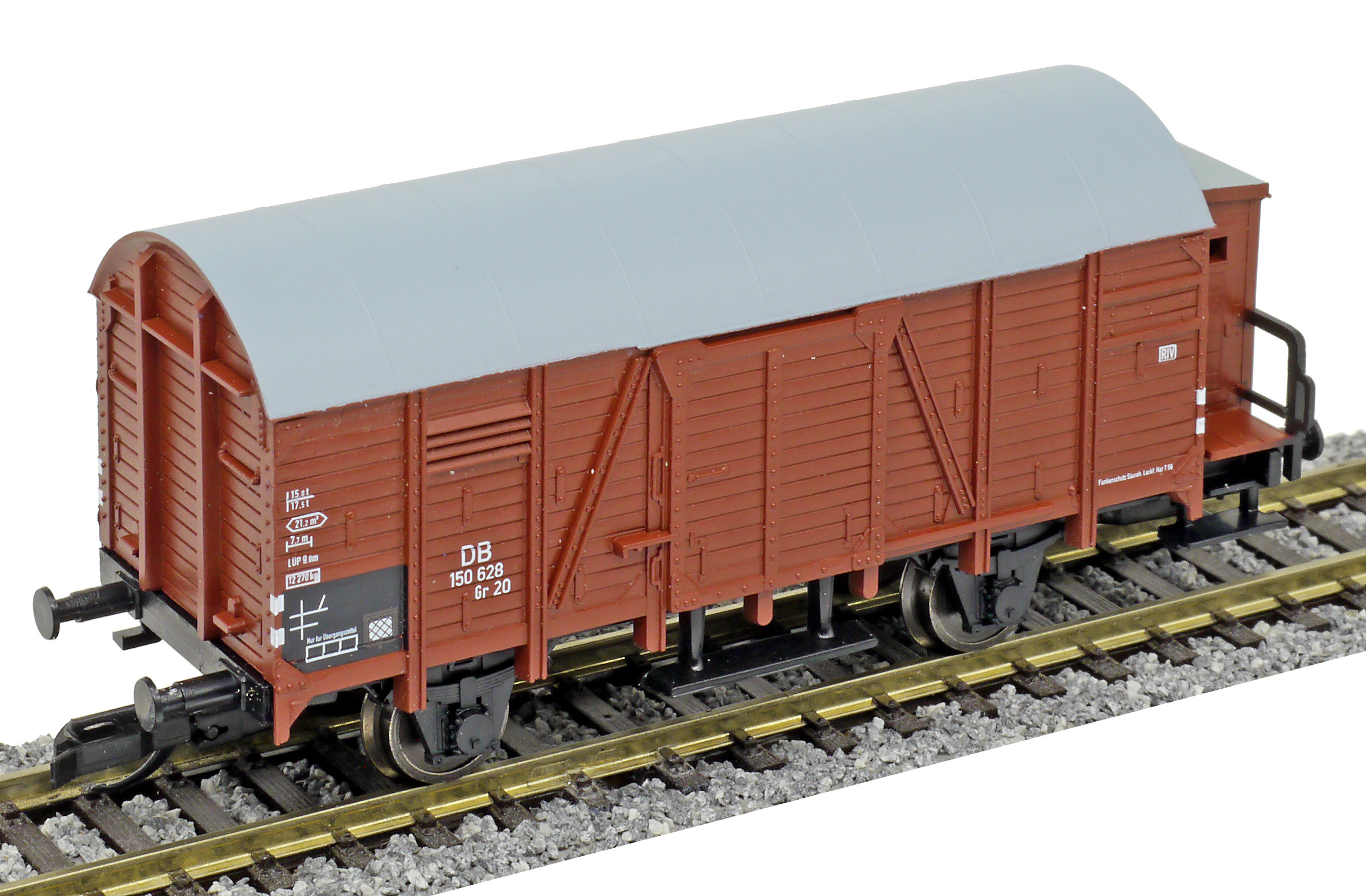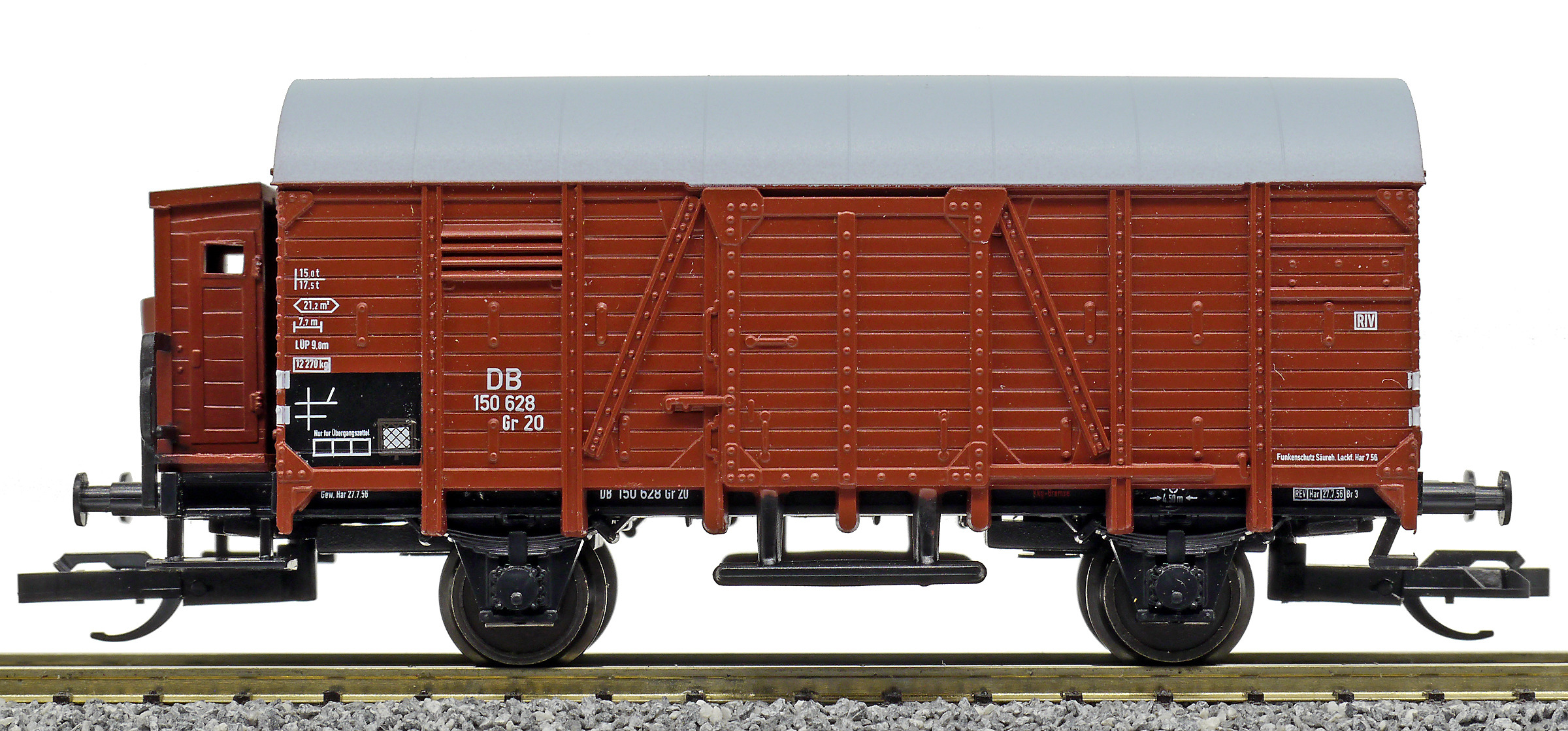 Kód   14127  [Nákladní vozy] → [Kryté] → [2-osé s vyšší střechou] → 14127: šedý s brzdařskou budkou „Weintransportwagen“