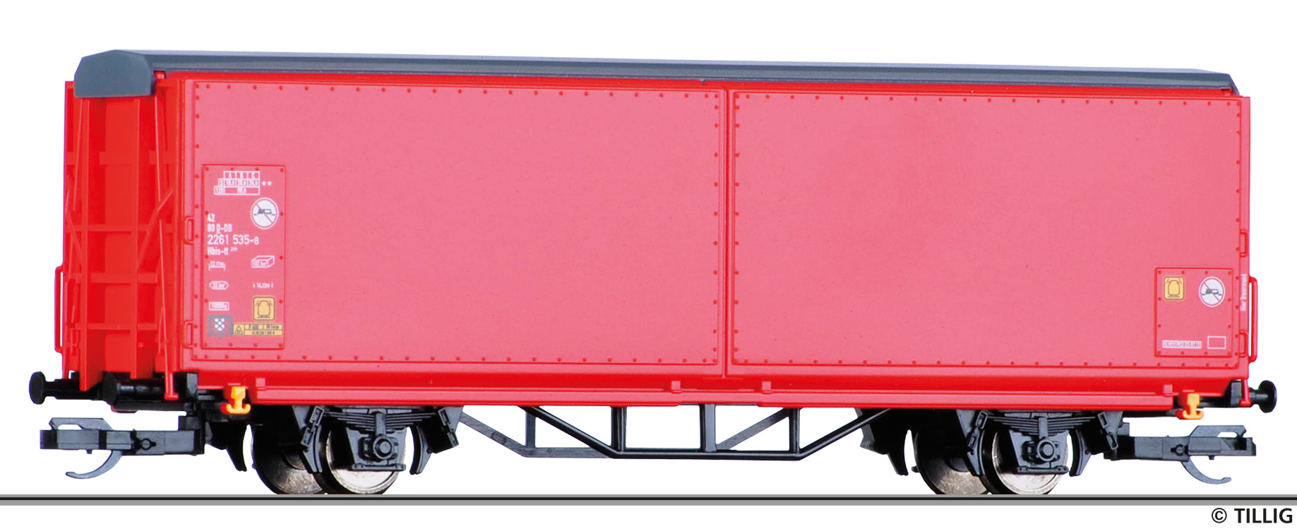 Kód   502376  [Nákladní vozy] → [Kryté] → [2-osé s posuvnými bočnicemi] → 502376: krytý nákladní vůz s posuvnými bočnicemi a s reklamním potiskem „TILLIG/Sebnitz“