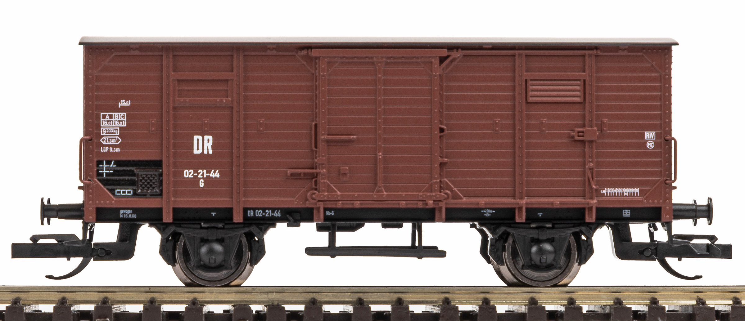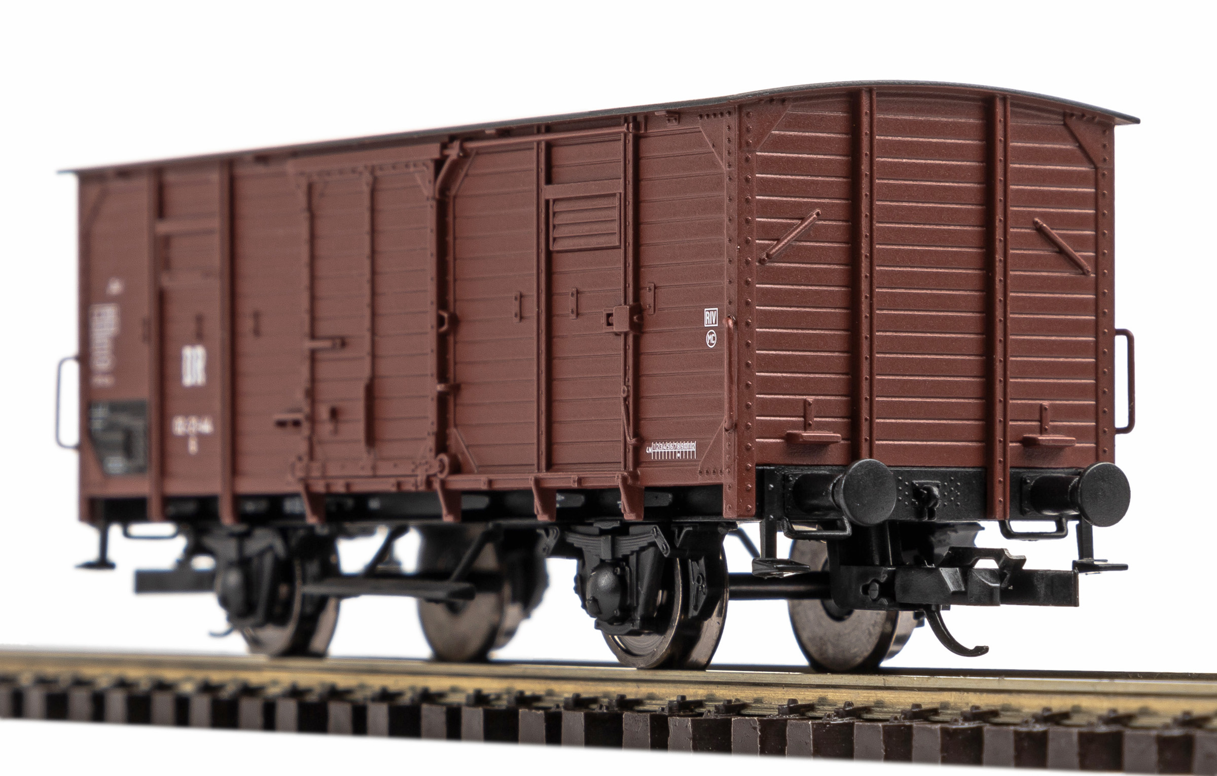 Kód   47033   ze SETu   [Nákladní vozy] → [Kryté] → [2-osé s nízkou střechou G02] → 47033: krytý nákladní vůz červenohnědý s šedou střechou „Fortschritt“
