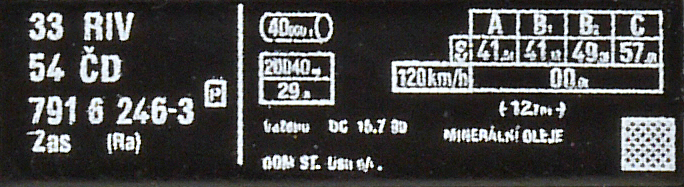 | • 33 54 791 6 246-3 | → | Z - kotlový (cisternový) vůz |