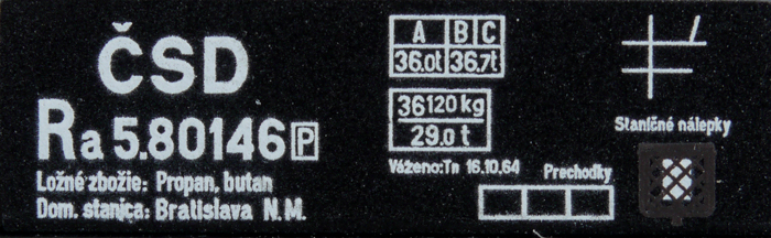 | kotlový vůz šedý s oranžovým pruhem „KVAPAĹNÝ PLYN “ |
