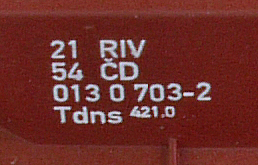 | • 21 54 013 0 703-2 | → | nákladní, nezávislé nápravy, pevný rozchod, ve vlastnictví železniční správy, RIV, PPV |