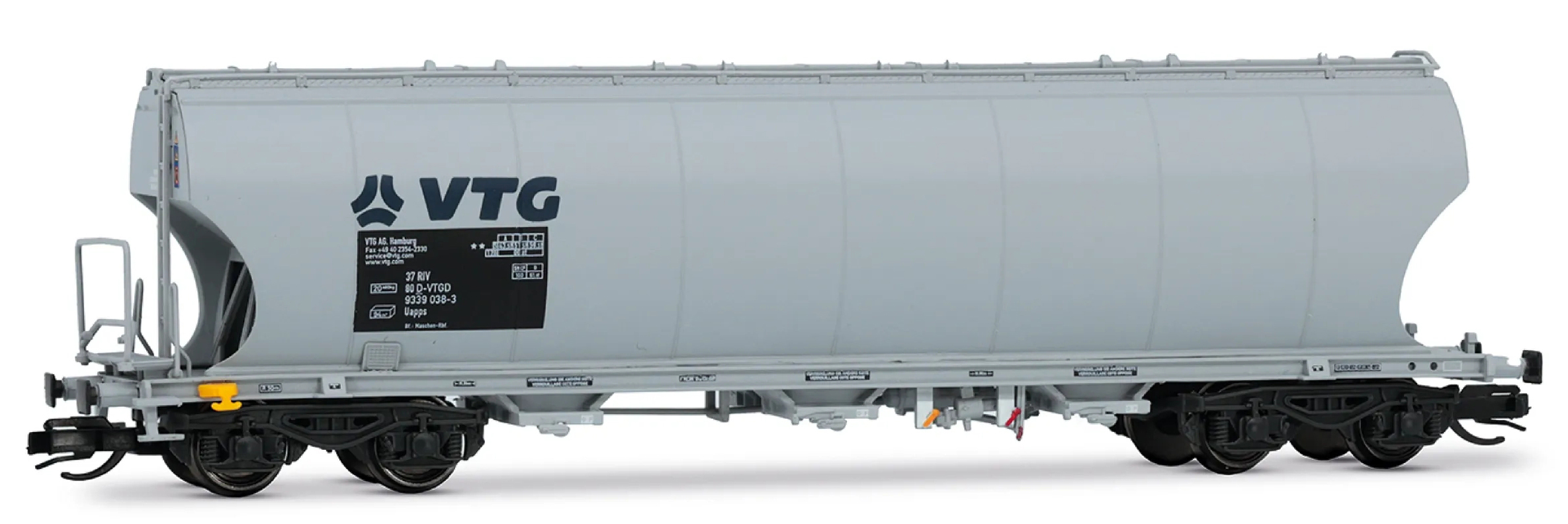 | nákladní samovýsypný vůz šedý s logem „VTG“ |