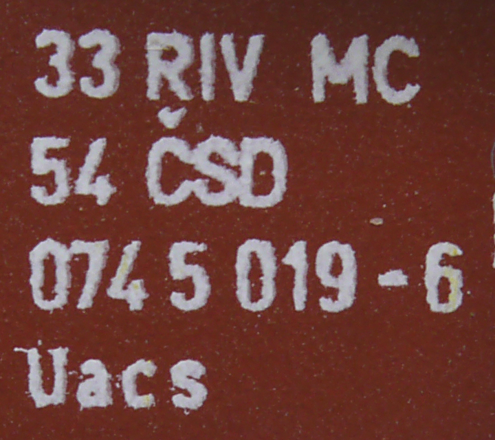 | • 33 54 074 5 019-6 | → | ČSD - Československé státní dráhy |