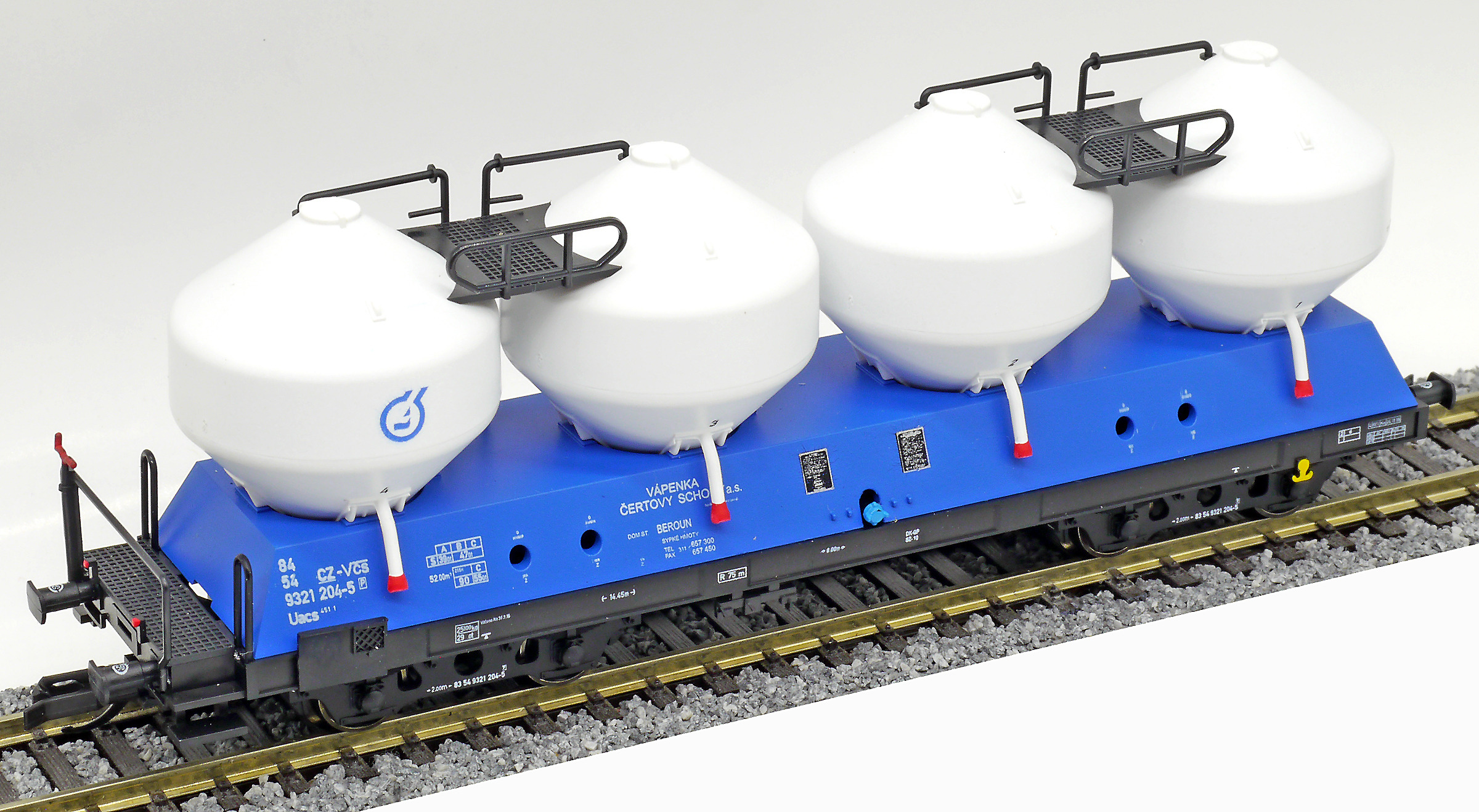 | nákladní samovýsypný vůz modrý s bílými nádobami „Vápenka Čertovy schody“ |