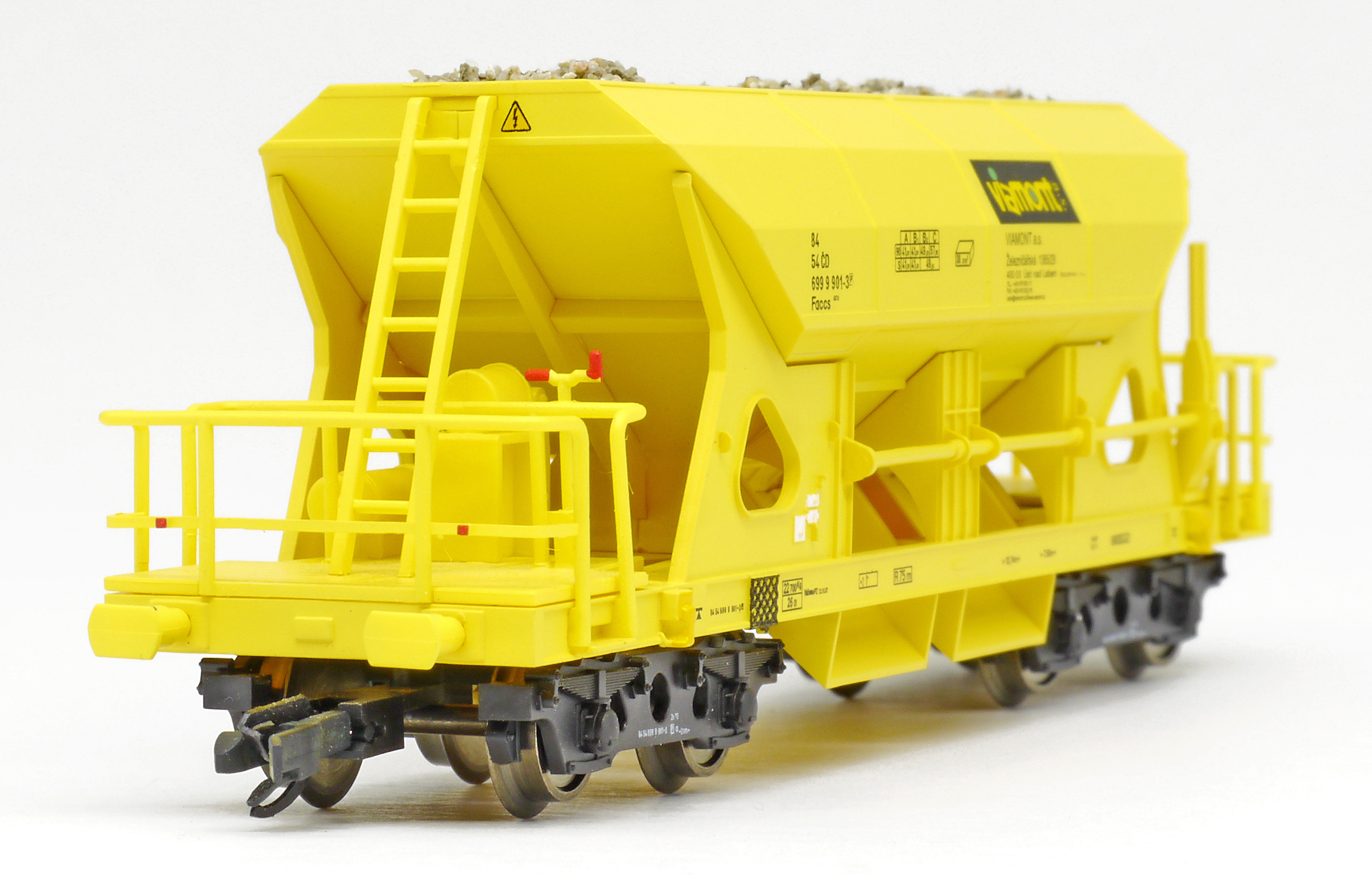 | nákladní samovýsypný vůz žlutý s nákladem štěrku „Viamont” |