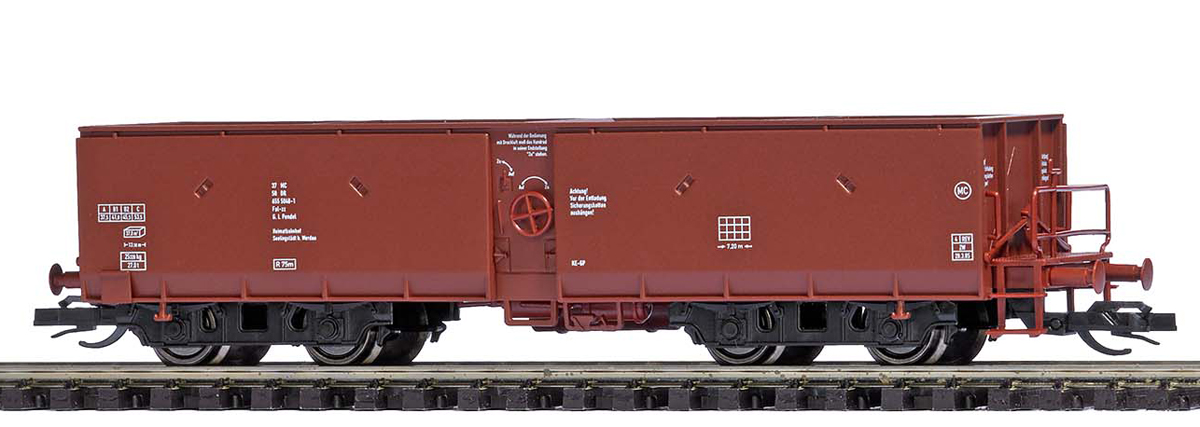 | samovýsypný vůz červenohnědý s brzdařskou plošinou |