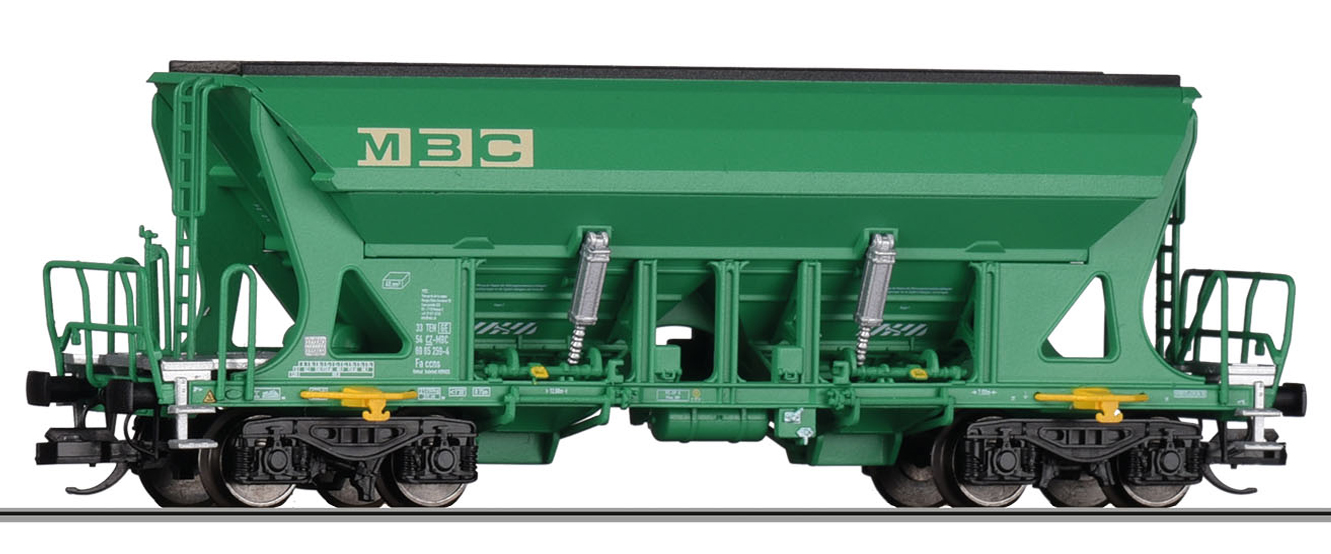 | nákladní samovýsypný vůz zelený s logem „MBC“ |