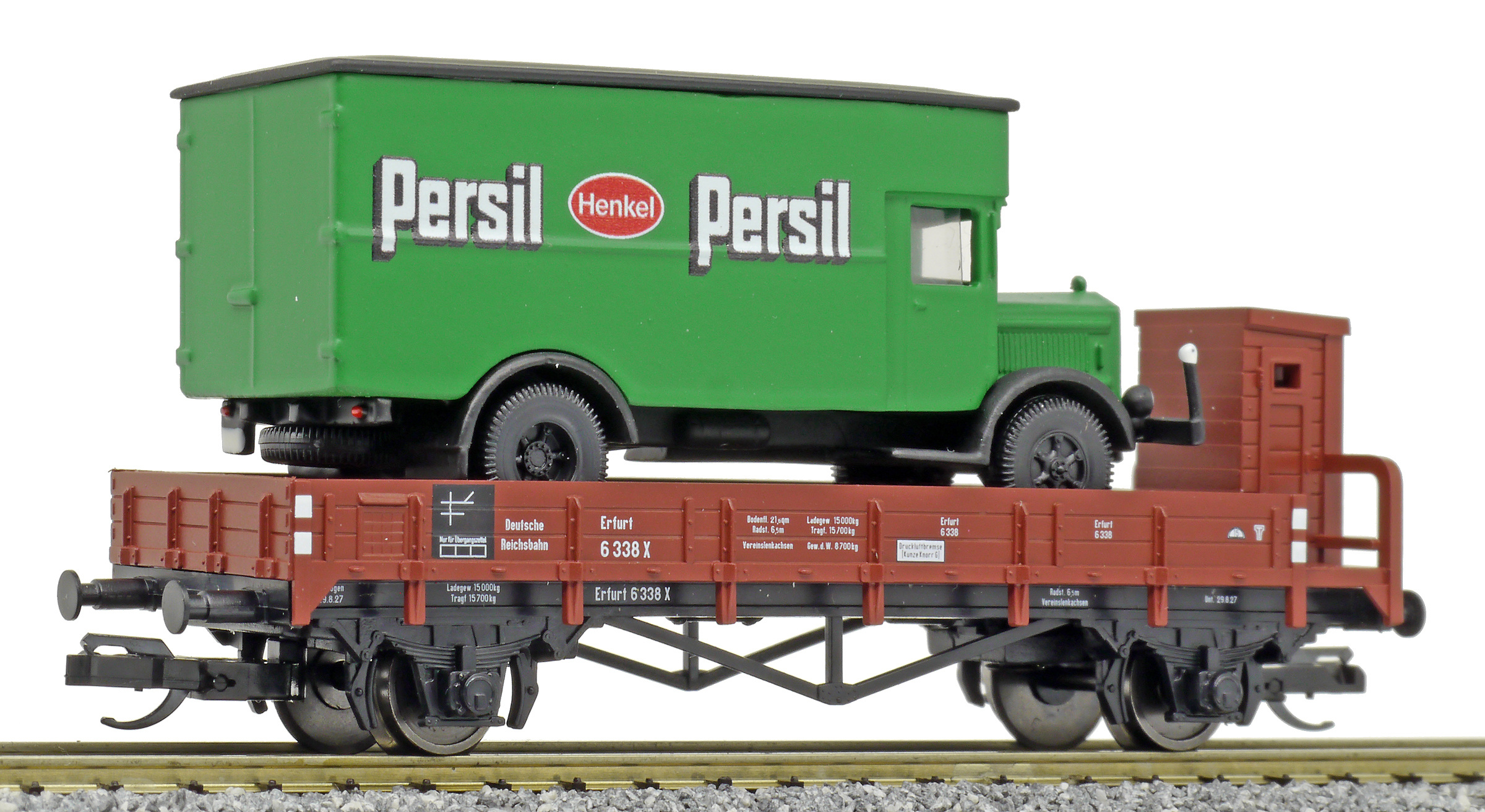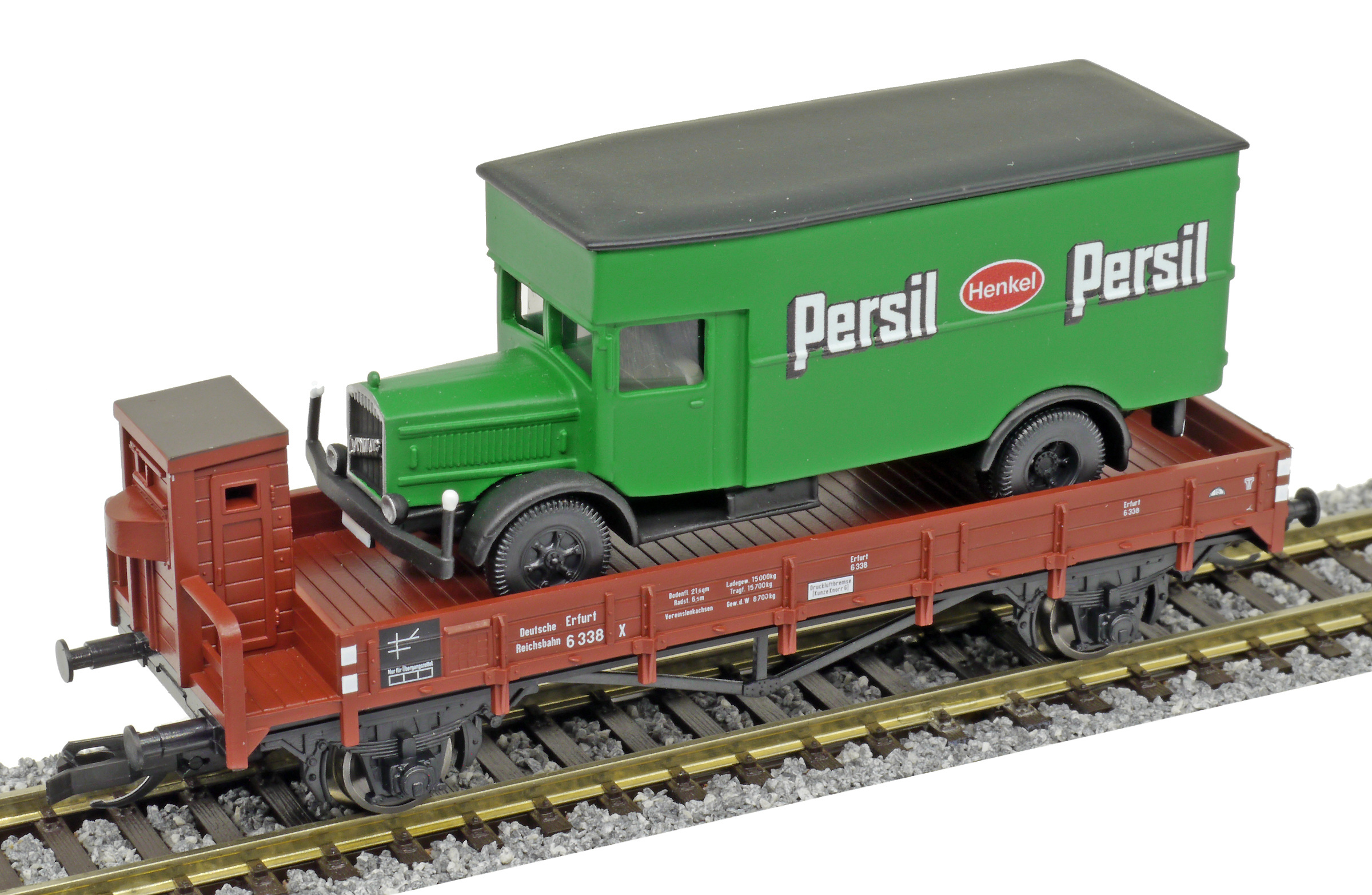 | nízkostěnný nákladní vůz červenohnědý s nákladem vozu „Persil“ |