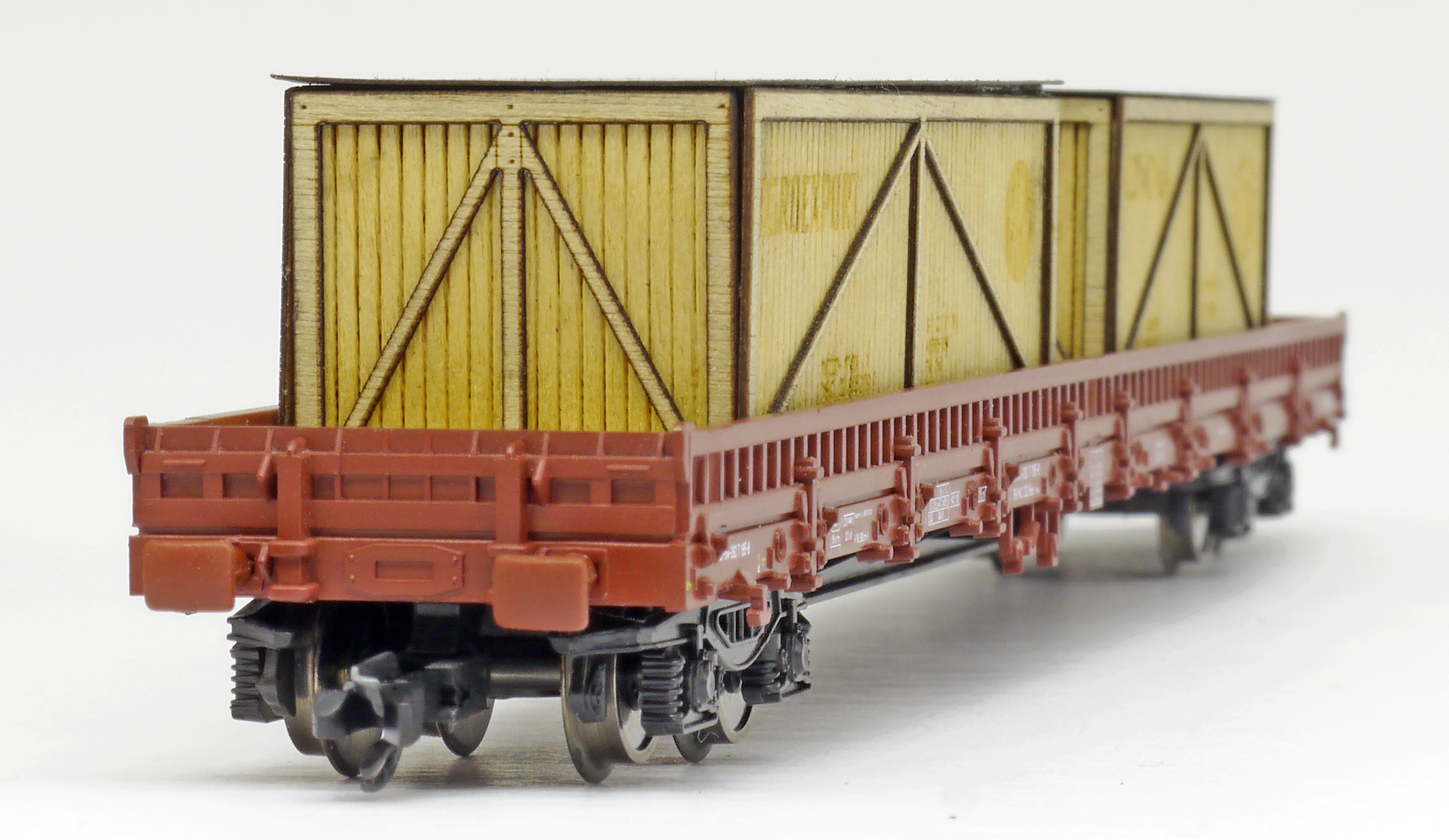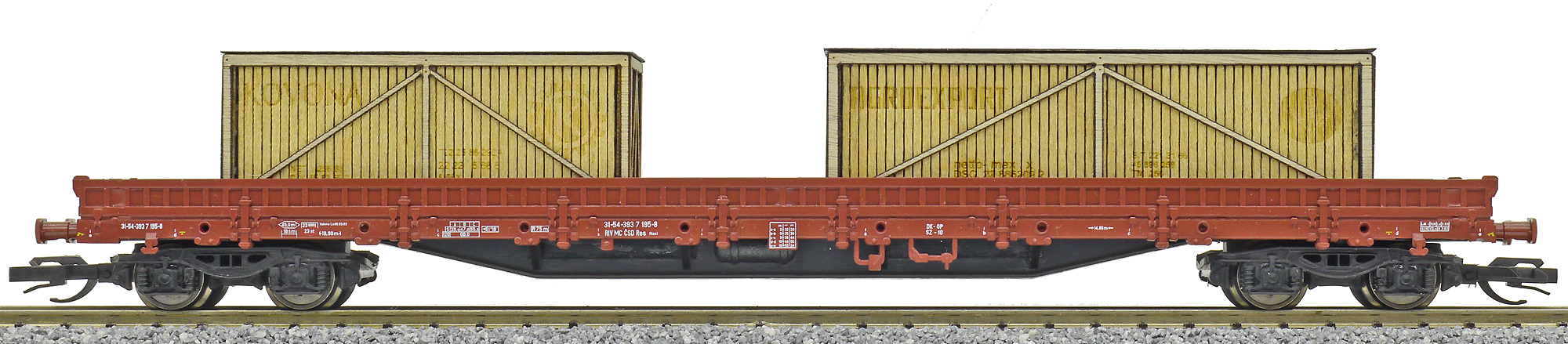 | nízkostěnný nákladní vůz červenohnědý s nákladem dvou beden „Strojexport” |