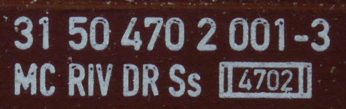 | • 31 50 470 2 001-3 | → | DR - Deutsche Reichsbahn |