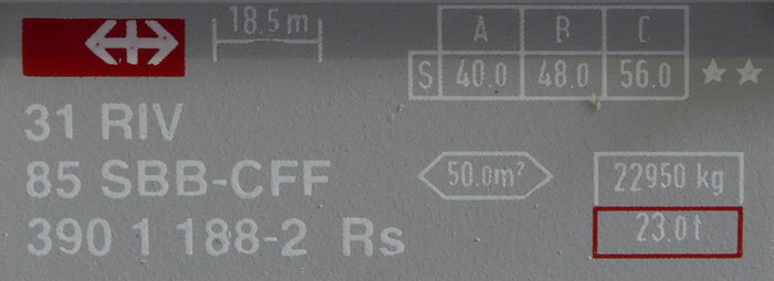 | • 31 85 390 1 188-2 | → | nákladní, s podvozky, pevný rozchod, ve vlastnictví železniční správy, RIV, PPV |