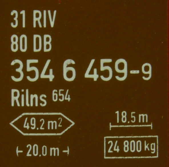 | • 31 80 354 6 459-9 | → | nákladní, s podvozky, pevný rozchod, ve vlastnictví železniční správy, RIV, PPV |