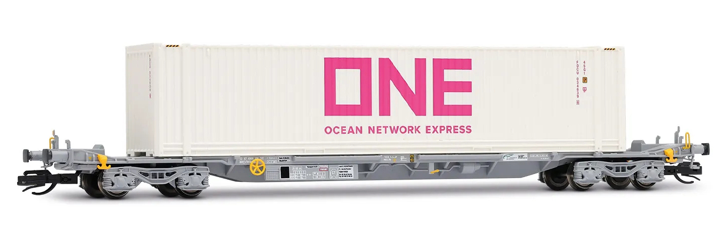 | kontejnerový vůz „IFA” šedý ložený 45' kontejnerem „ONE” |