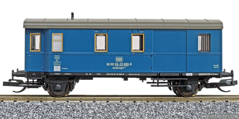 | pomocný vůz do pracovního vlaku modrý s šedou střechou |