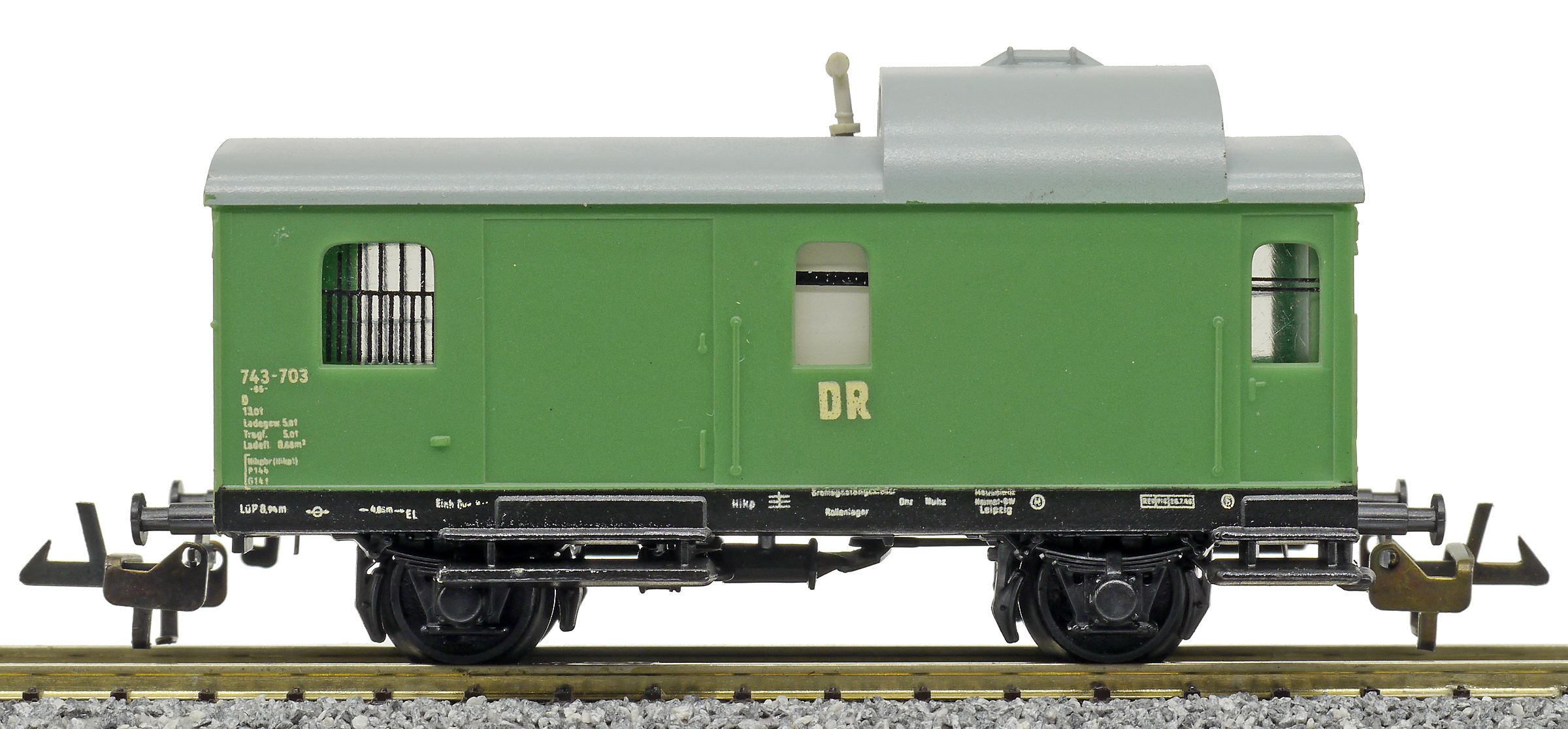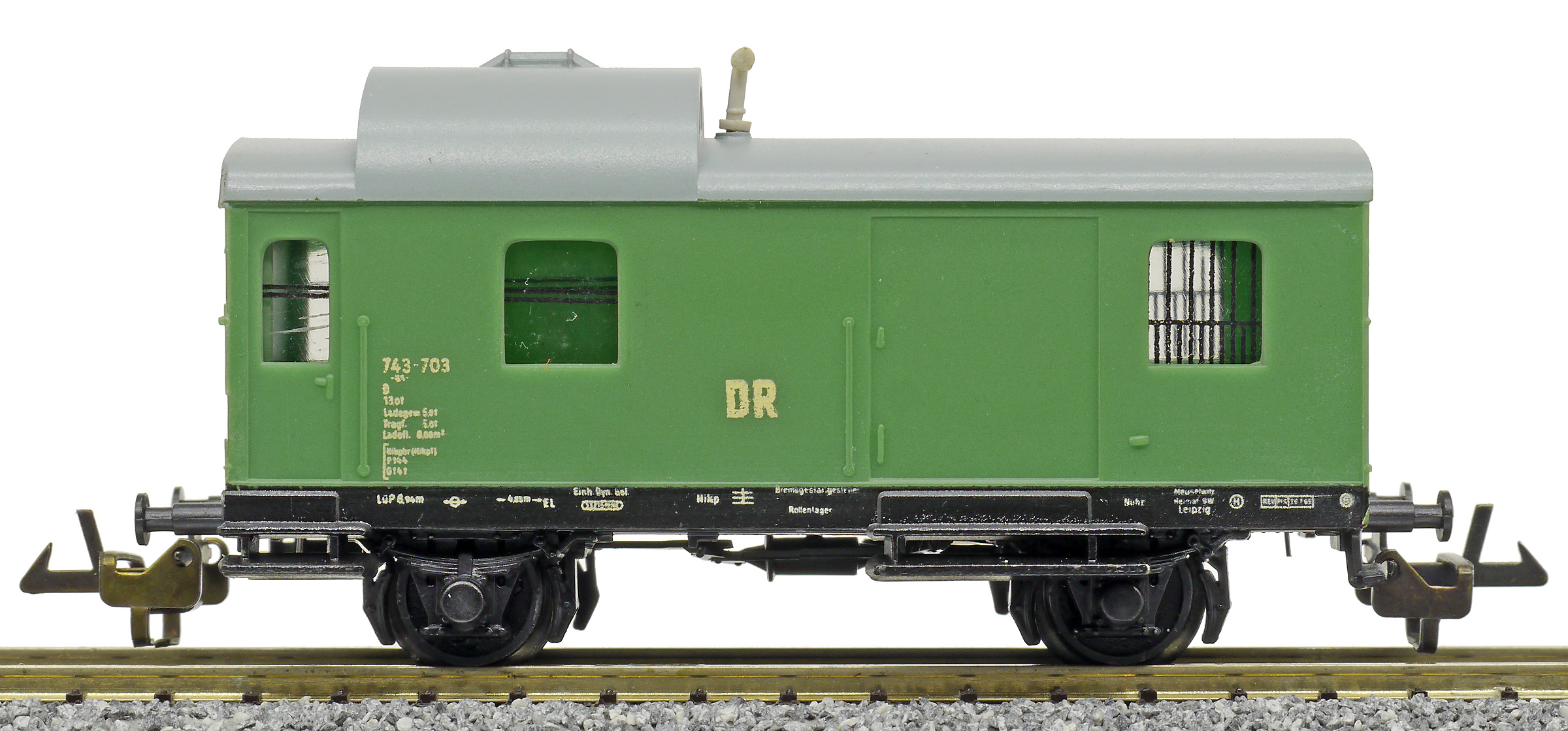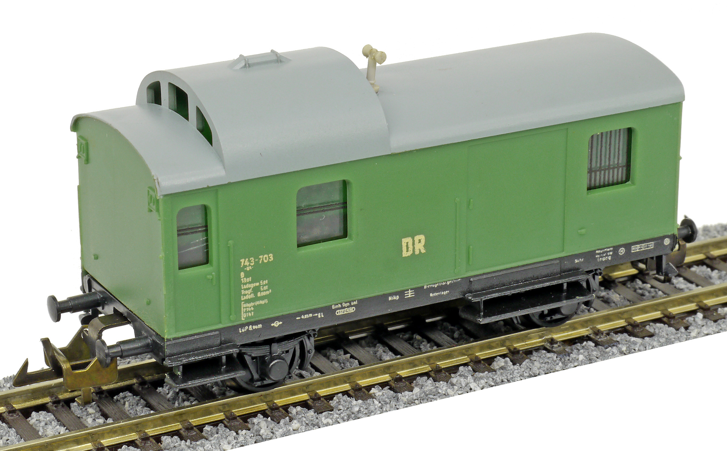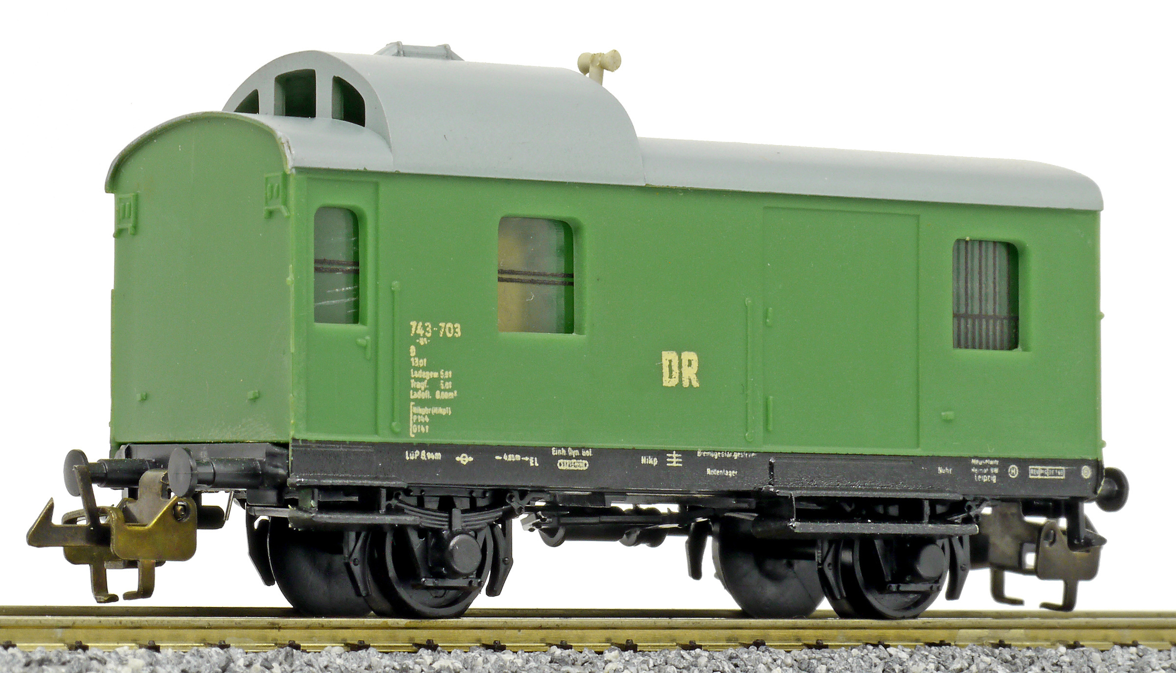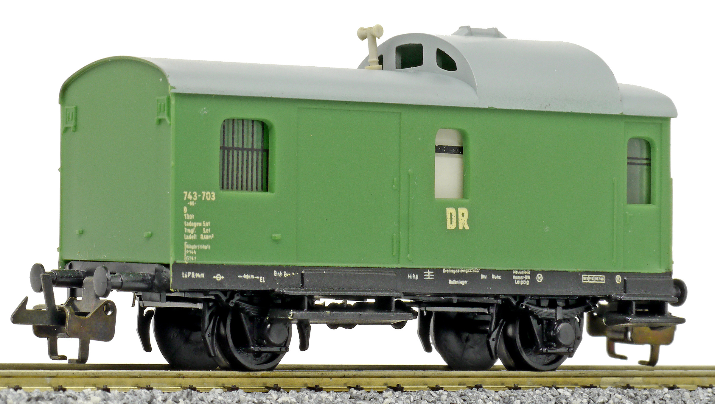 služební vůz pro nákladní vlaky zelený s šedou střechou