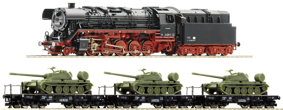 | set parní lokomotivy BR 44 a tří nákladních vozů |