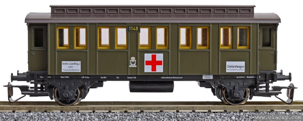 | lazaretní vůz tmavě zelený s hnědou střechou „Chefarztwagen“ |